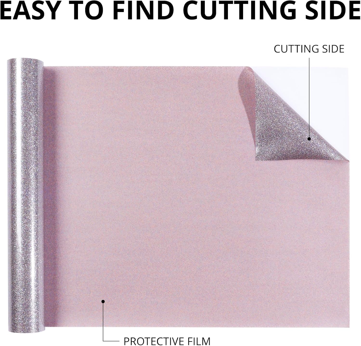 - 【10 INCH x 8 FEET】HTVRONT rainbow glitter htv are easy and convenient to cut into different size of art designs or logos or letters and perfect for 12x12" and 12x24" cutting mats. Our iron on vinyl are compatible for all cutter machine. The glitter iron on vinyl uses fine glitter, which is smooth, easy to layer and apply. All the glitters are sealed in, never residue