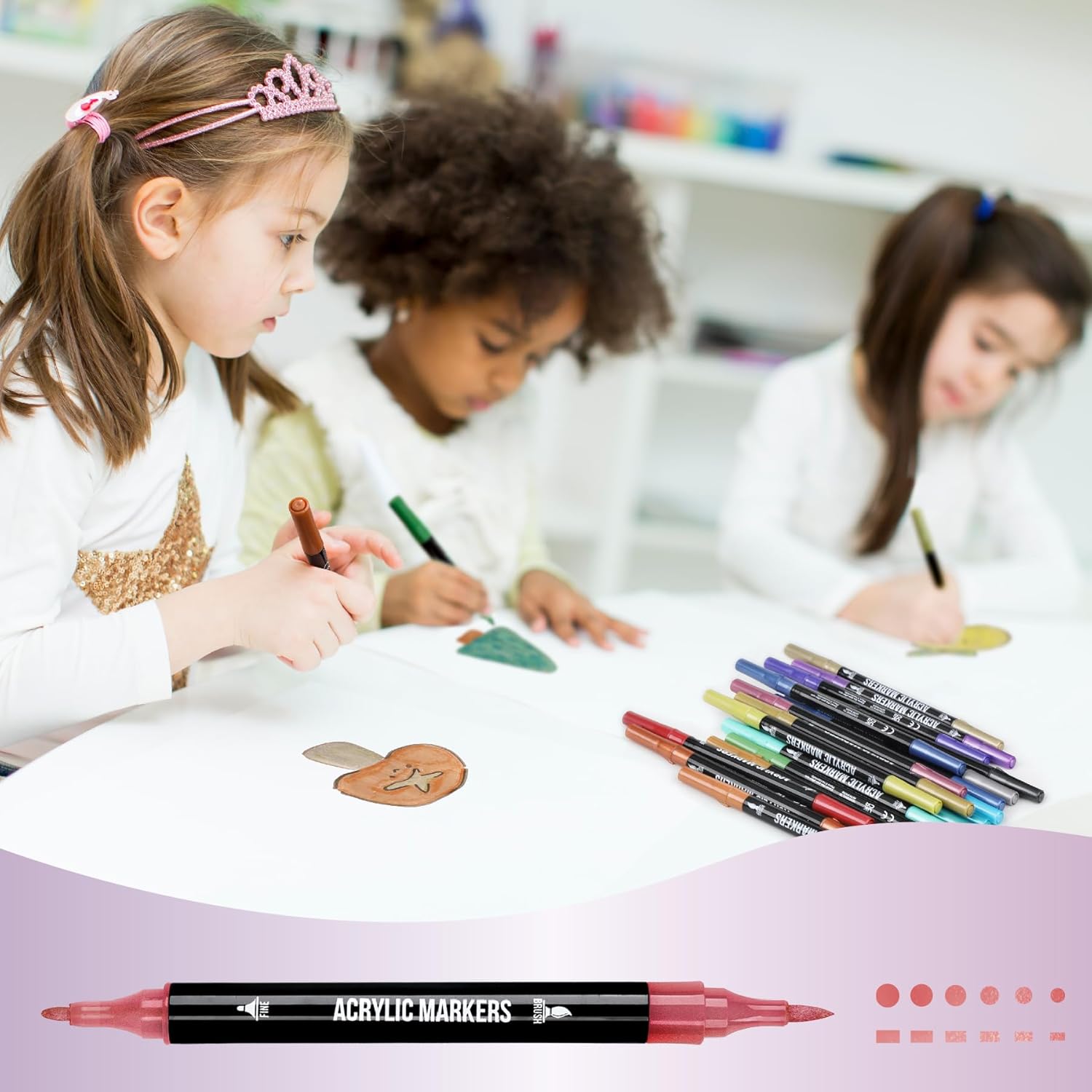 - 【Versatile Dual-Tip Design】: Unleash your creativity with our acrylic markers featuring a unique dual-tip design. The extra-fine tip is perfect for intricate details, while the brush tip allows for expressive brushstrokes. From delicate line work to bold sweeps, these markers adapt effortlessly to your artistic vision.