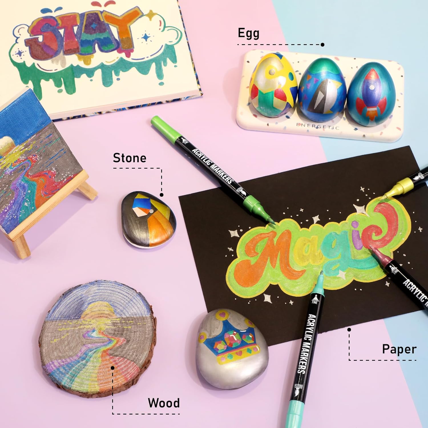 - 【Great Gift Idea for Creativity Enthusiasts】: Unlock the imaginative potential of kids, teens, girls, and boys with our acrylic markers – an ideal and unique gift choice. Whether it's birthdays, Easter Day, Halloween, Christmas Day, Valentine's Day, Thanksgiving Day, New Year, or any special holiday, these markers make for a perfect present that sparks creativity and artistic expression.