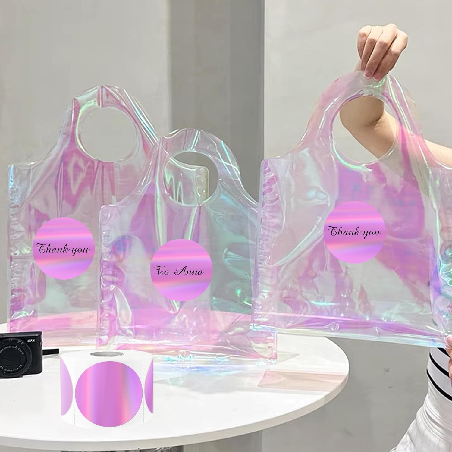 - Holographic Pink Thermal Sticker Labels: Printed on rainbow metallic vinyl, the color of the surface of the sticker can be changed under the light with the move, which is beautiful and charming! Our holographic stickers offer an amazing visual experience like and leave a remarkable impression