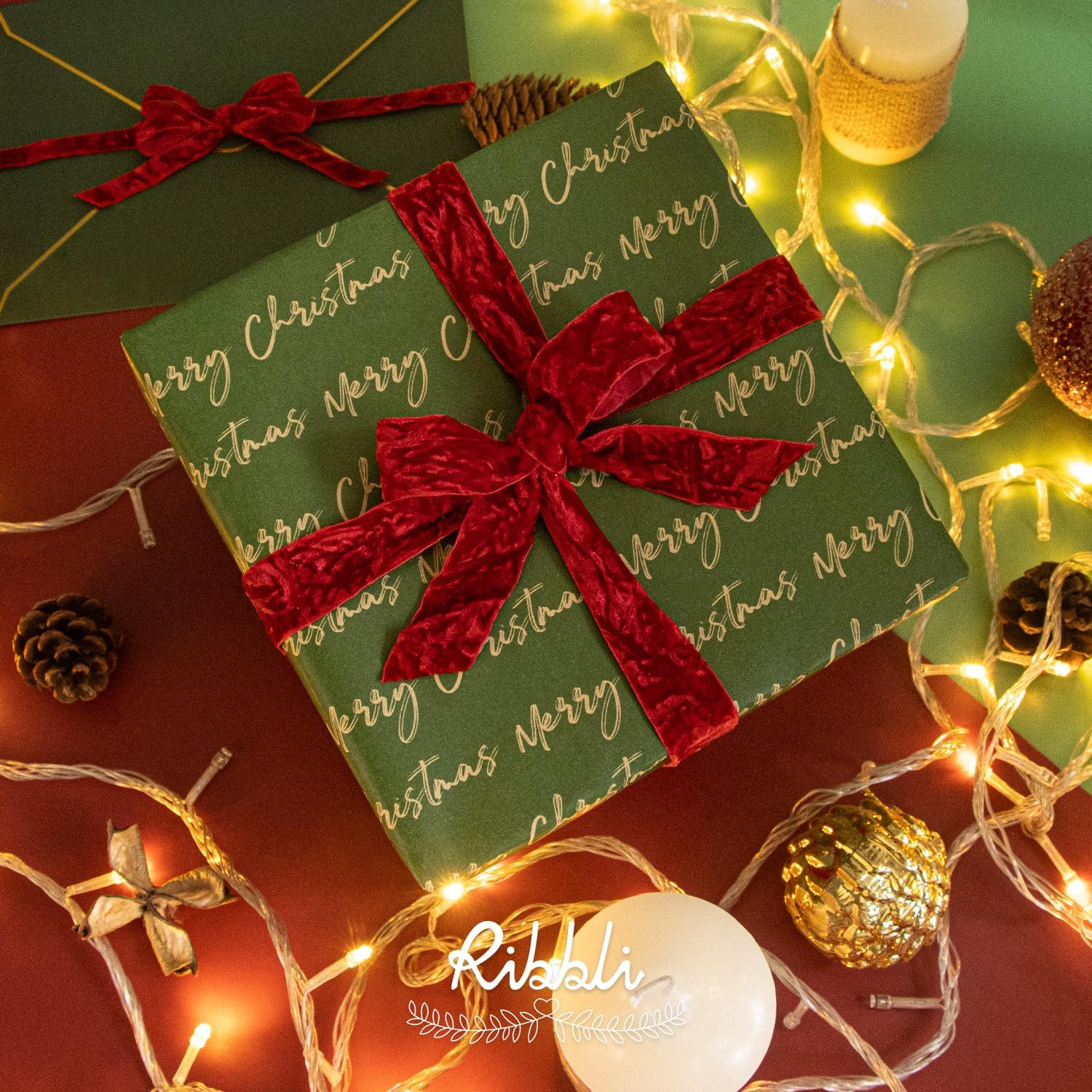 Ribbli Red Velvet Ribbon 1 Inches Luxury Crinkled Red Christmas Ribbon for Gift Wrapping Crafts Home Decor-Continuous 10 Yard