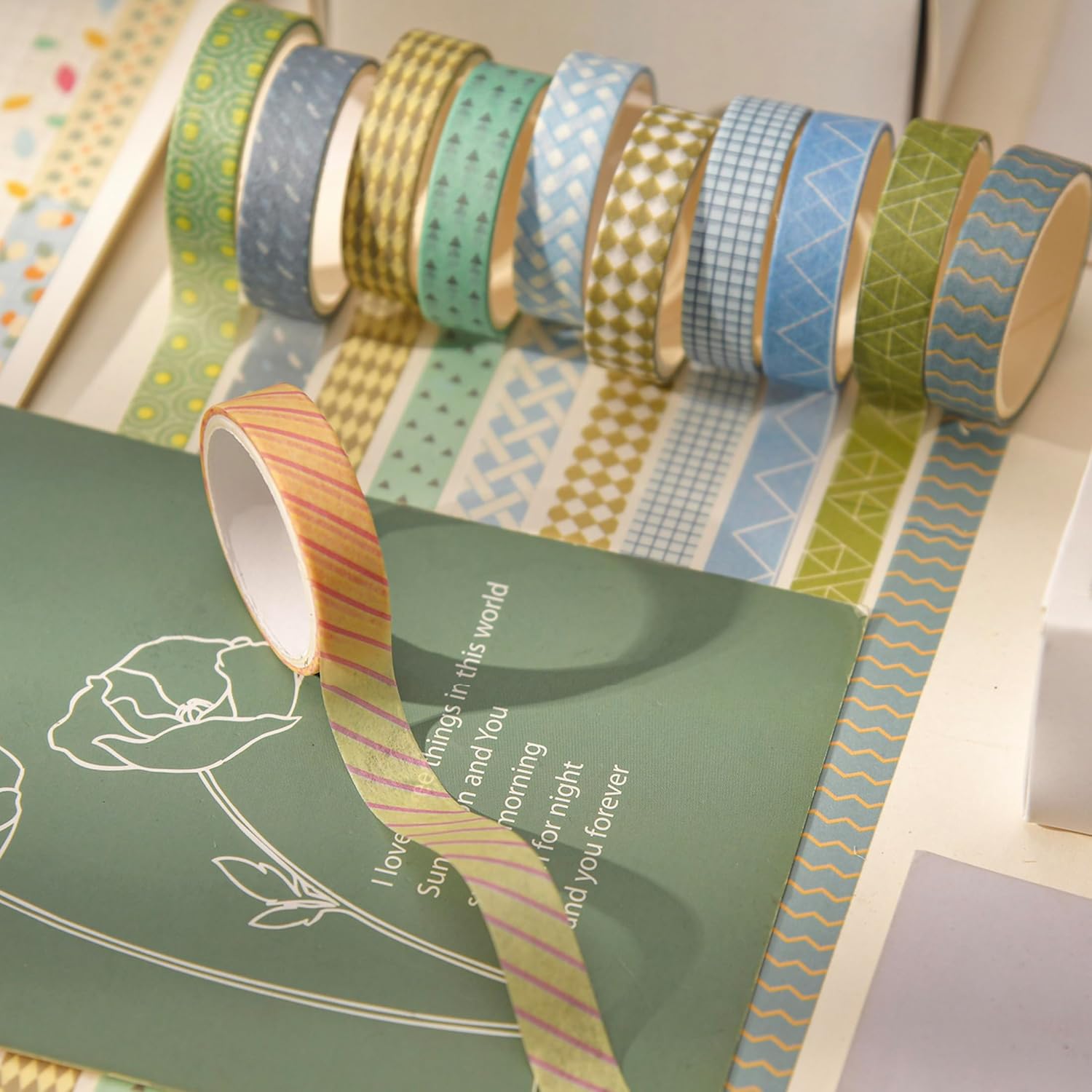 - 👍【GOOD STICKING & TRPATIABLE】These washi tapes will NOT damage your art works. It can torn easily by hand and sticky on clean surfaces, such as wood, paper, wall, glass, vinyl, plastic, leather, metal and laminate and so on