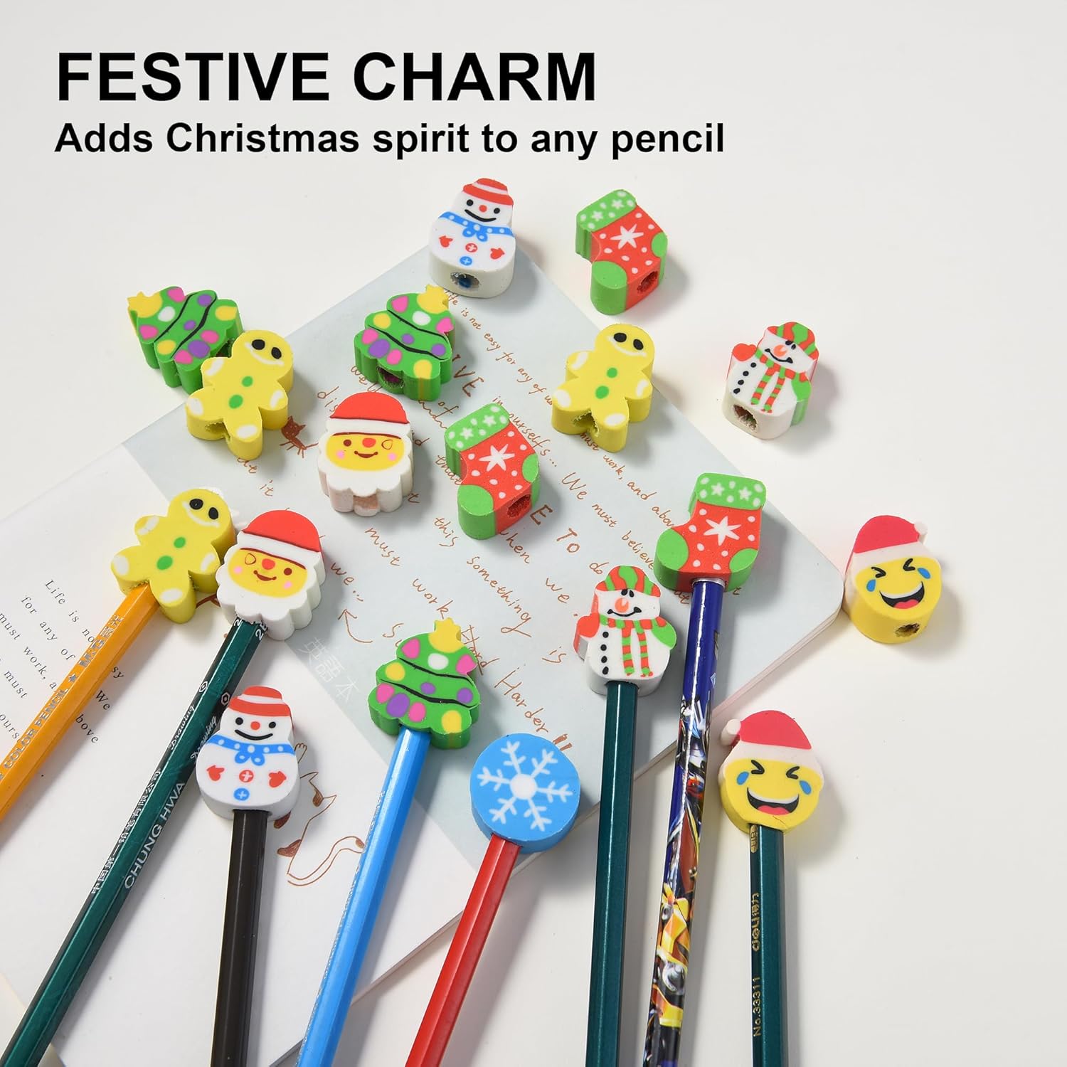 - Easy to Use: Simply slide these charming erasers onto any standard pencil for an instant festive upgrade