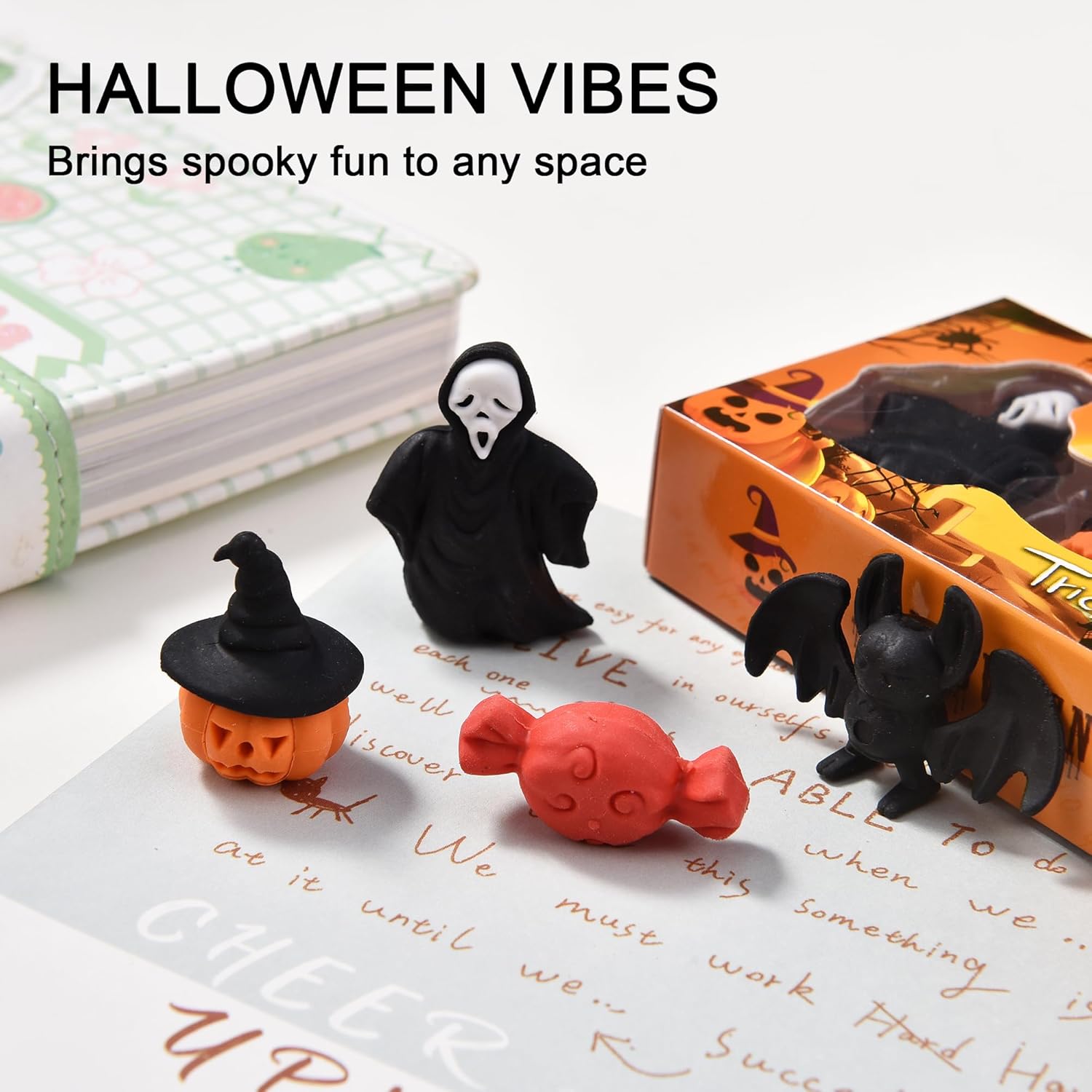 - Halloween Spirit in Every Detail: Each set includes 16 Halloween-themed 3D erasers featuring spooky designs like ghosts, pumpkins, bats, and candies