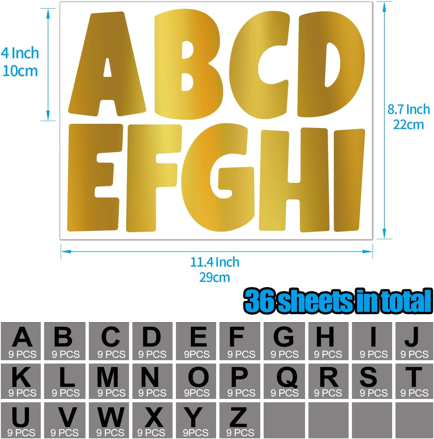 Bemeol Letter Stickers 351 Pieces 4 Inch Bulletin Board Letters Alphabet Cutout Letter for Bulletin Board Display Home Classroom School Decor(Gold)