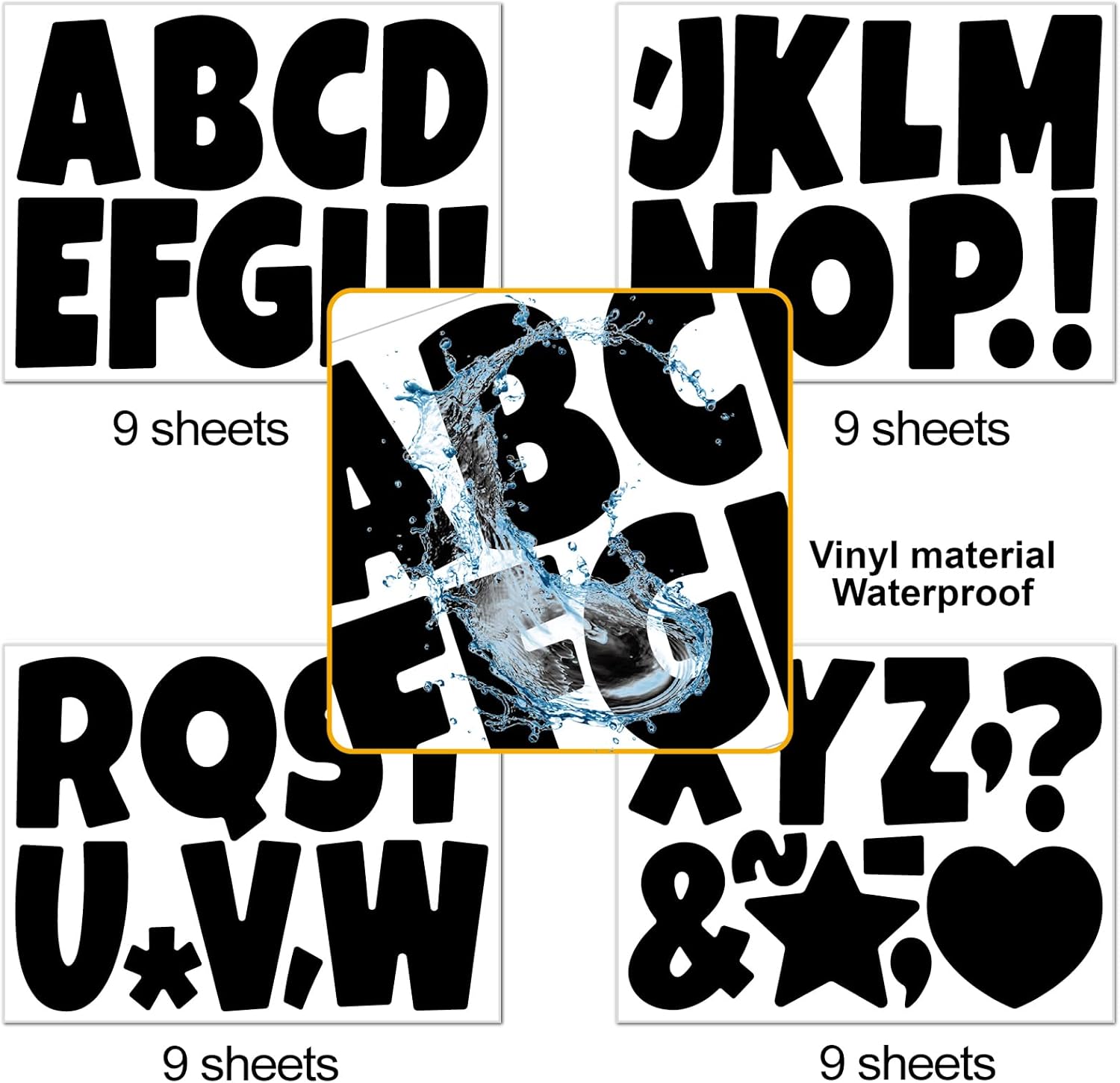 Bemeol Letter Stickers 351 Pieces 4 Inch Bulletin Board Letters Alphabet Cutout Letter for Bulletin Board Display Home Classroom School Decor(Black)