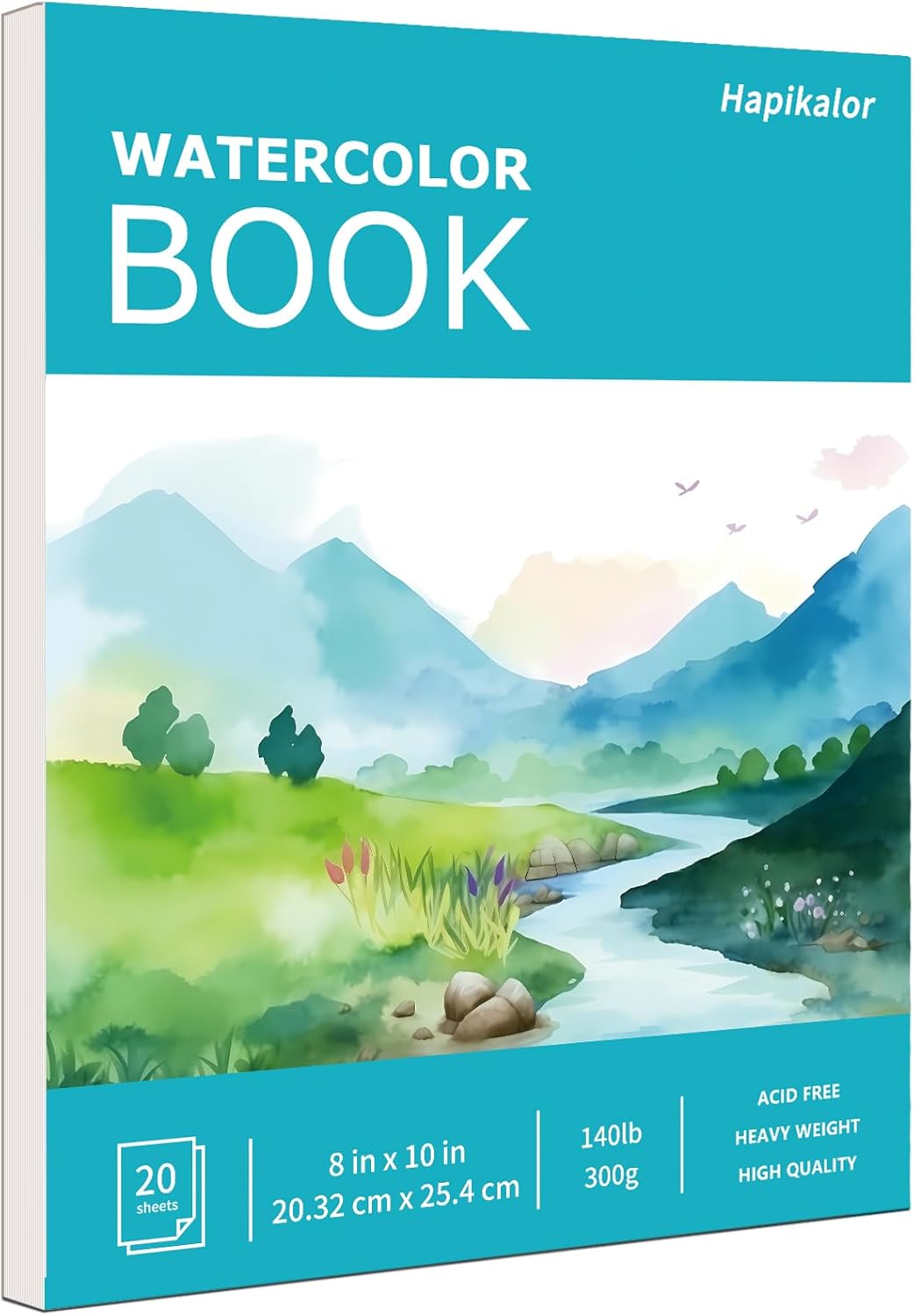 Hapikalor 8"x10" Watercolor Paper Pad, 1-Pack, 140lb/300gsm Artist Painting Drawing Paper Book, Art Supplies for Adults Kids, Watercolors, Watercolor Paint Set, Sketchbook, Journal, Teal