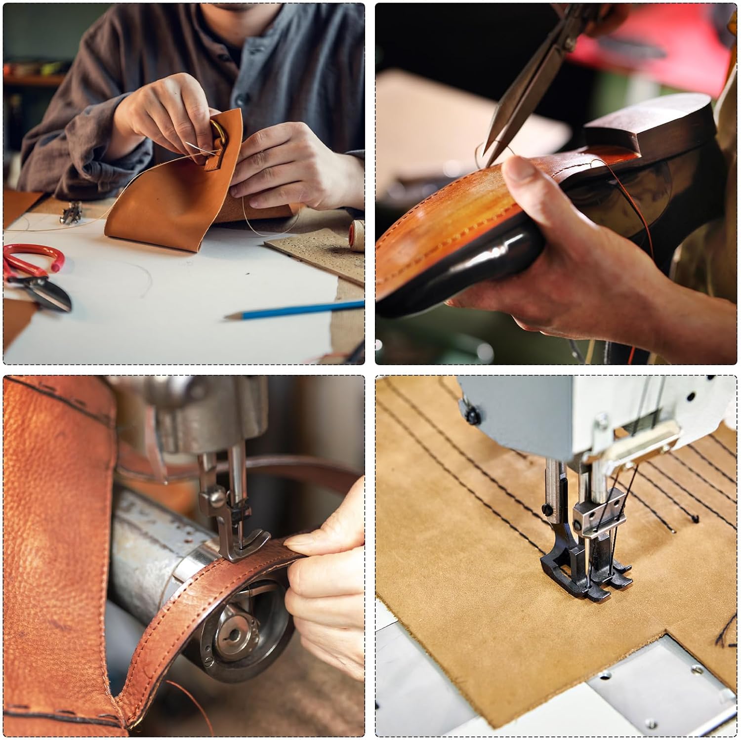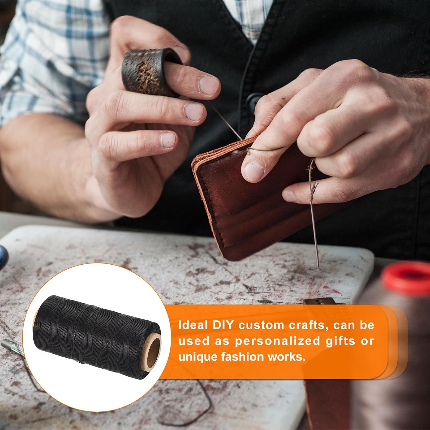 - 150D flat waxed thread is made of multiple polyester threads braided and covered with wax, which is tough and durable, not easy to break, and has high tensile strength; The waxed cord is soft and not easy to deform. The perforated sewing is smooth and flexible. It can withstand high temperatures and is easy to seal, cut, knot, and sew; it can be used for most leather DIY projects; Rich in colors, made of braided polyester, the thread is lightly waxed and coated, waterproof and non-fad