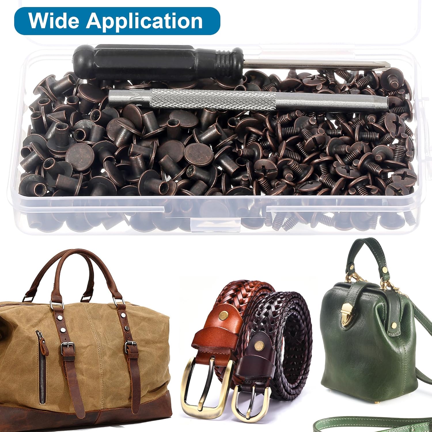 - Wide Uses: These rivets are suitable for leather crafts, as a fixed or decorative items used; For example: belt connection, bag decoration, clothing decoration, key bag nails, stationery ledger nails, photo album nails, calendar screws, booking