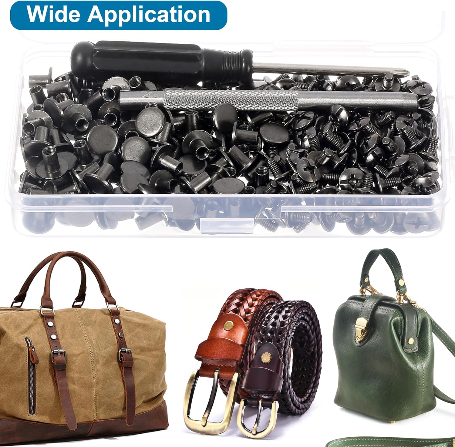 - Wide Uses: These rivets are suitable for leather crafts, as a fixed or decorative items used; For example: belt connection, bag decoration, clothing decoration, key bag nails, stationery ledger nails, photo album nails, calendar screws, booking