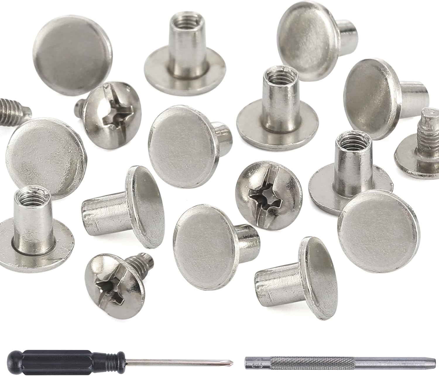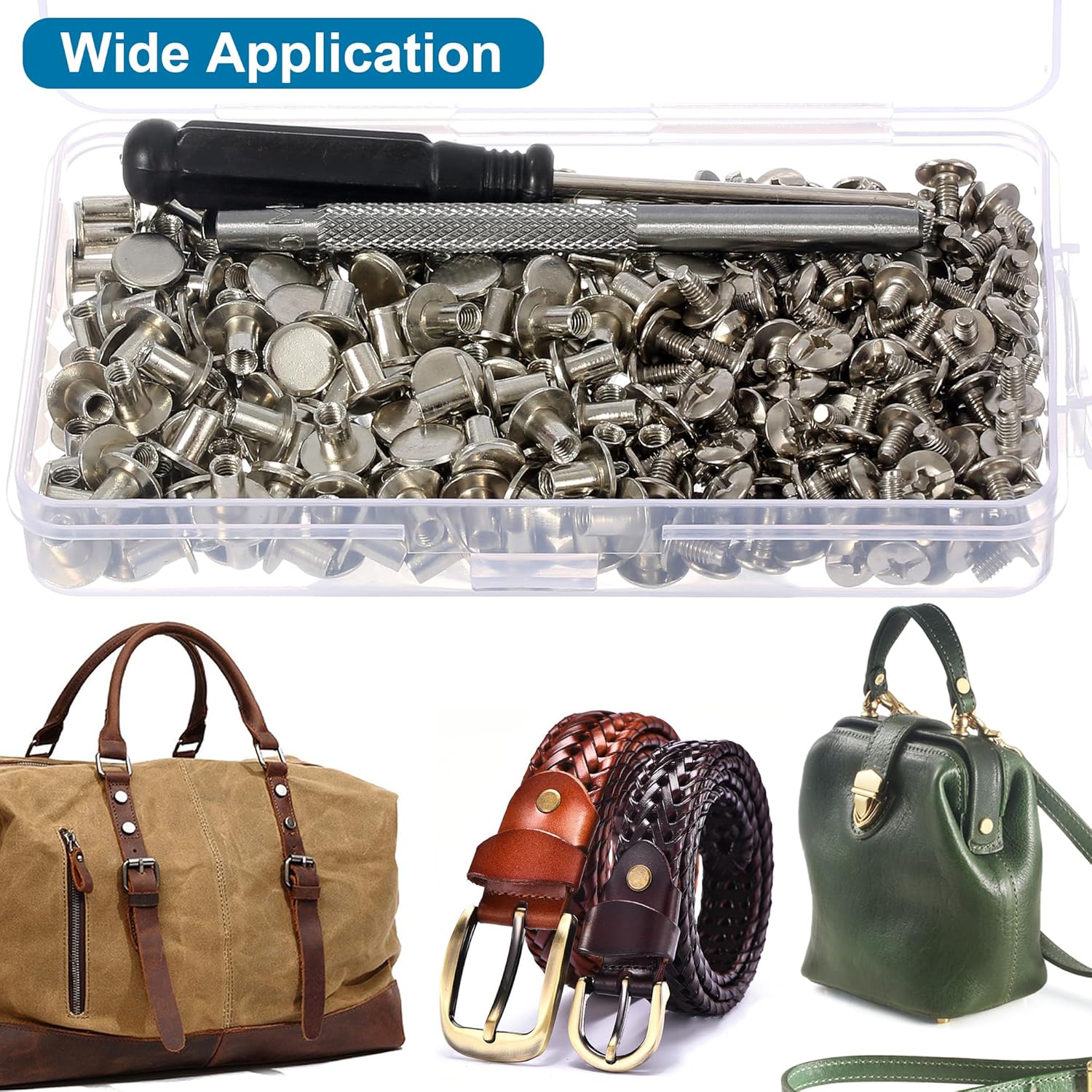 - Wide Uses: These rivets are suitable for leather crafts, as a fixed or decorative items used; For example: belt connection, bag decoration, clothing decoration, key bag nails, stationery ledger nails, photo album nails, calendar screws, booking