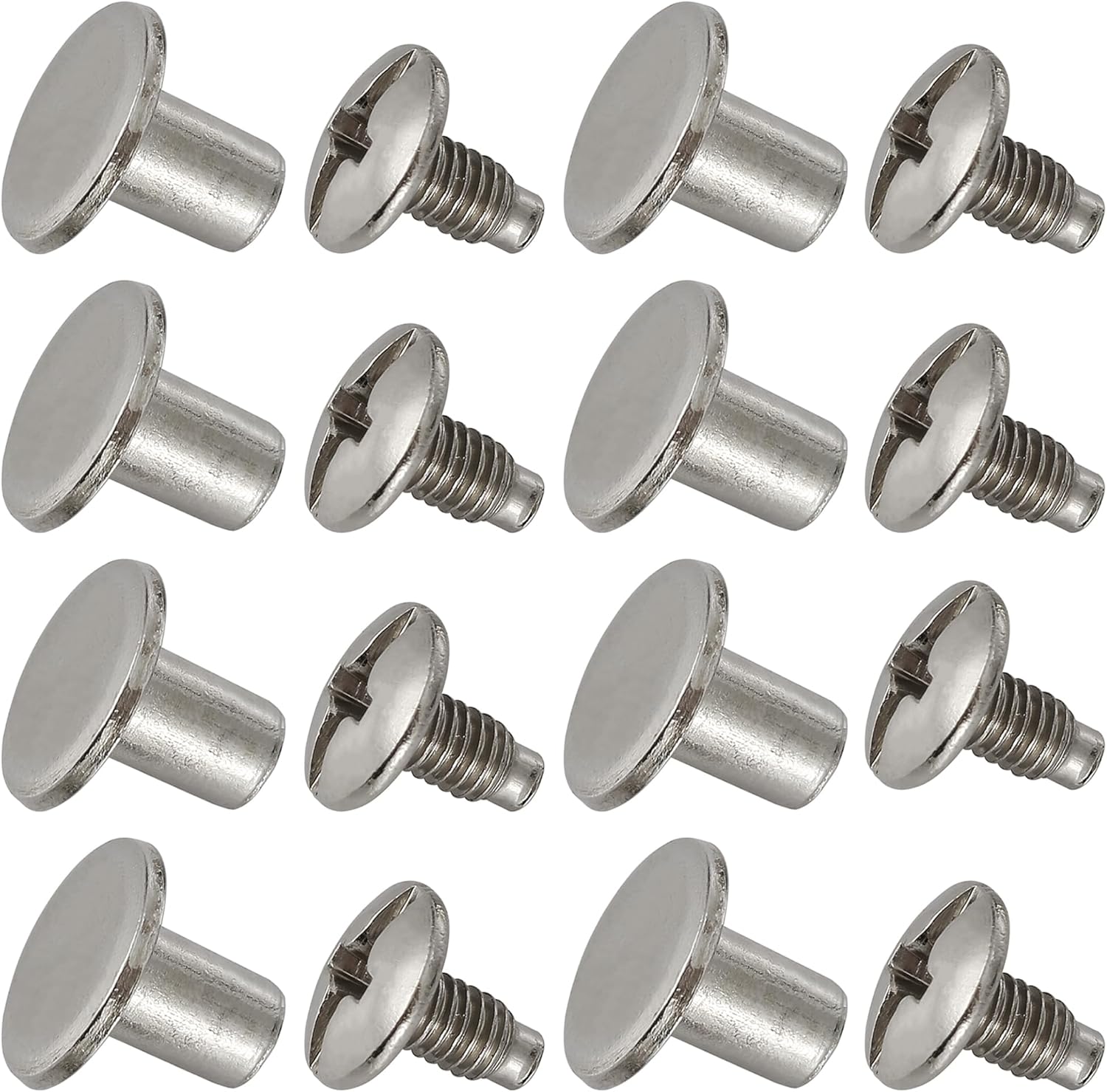 YORANYO 150 Sets 8MM Chicago Screws Leather Rivets for Fabric Chicago Binding Screws Buttons Metal Studs Rivets for Decorate and Repair Belts Bags Shoes Purse Dog Collar Leather Craft (Silver)