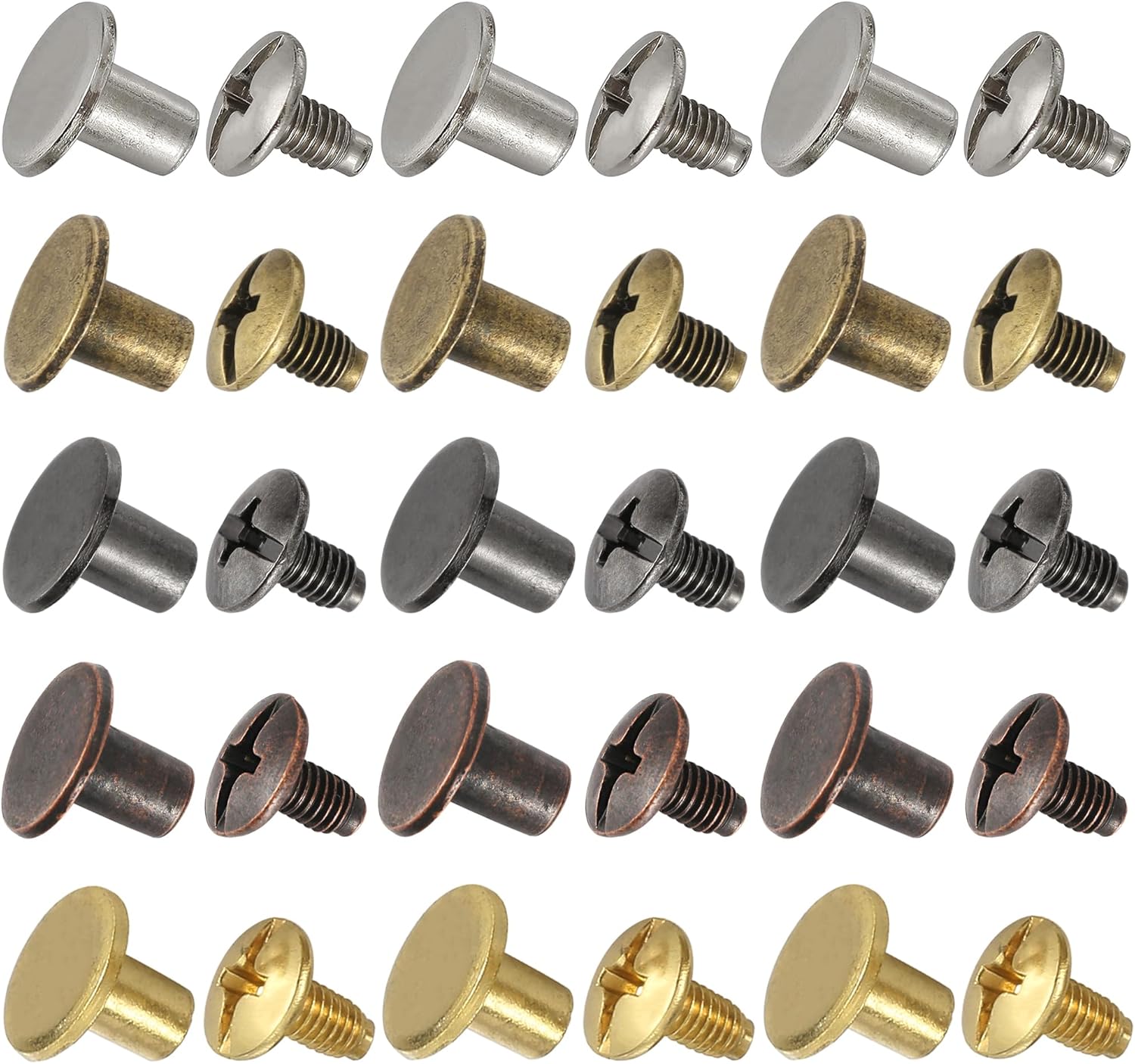 YORANYO 150 Sets 8MM Chicago Screws Leather Rivets for Fabric Chicago Binding Screws Buttons Metal Studs Rivets for Decorate and Repair Belts Bags Shoes Purse Dog Collar Leather Craft (Mixed Color)