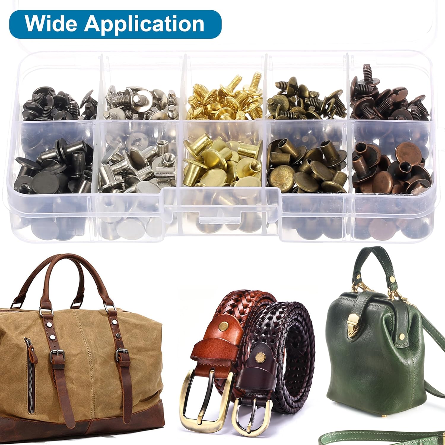 - Wide Uses: These rivets are suitable for leather crafts, as a fixed or decorative items used; For example: belt connection, bag decoration, clothing decoration, key bag nails, stationery ledger nails, photo album nails, calendar screws, booking