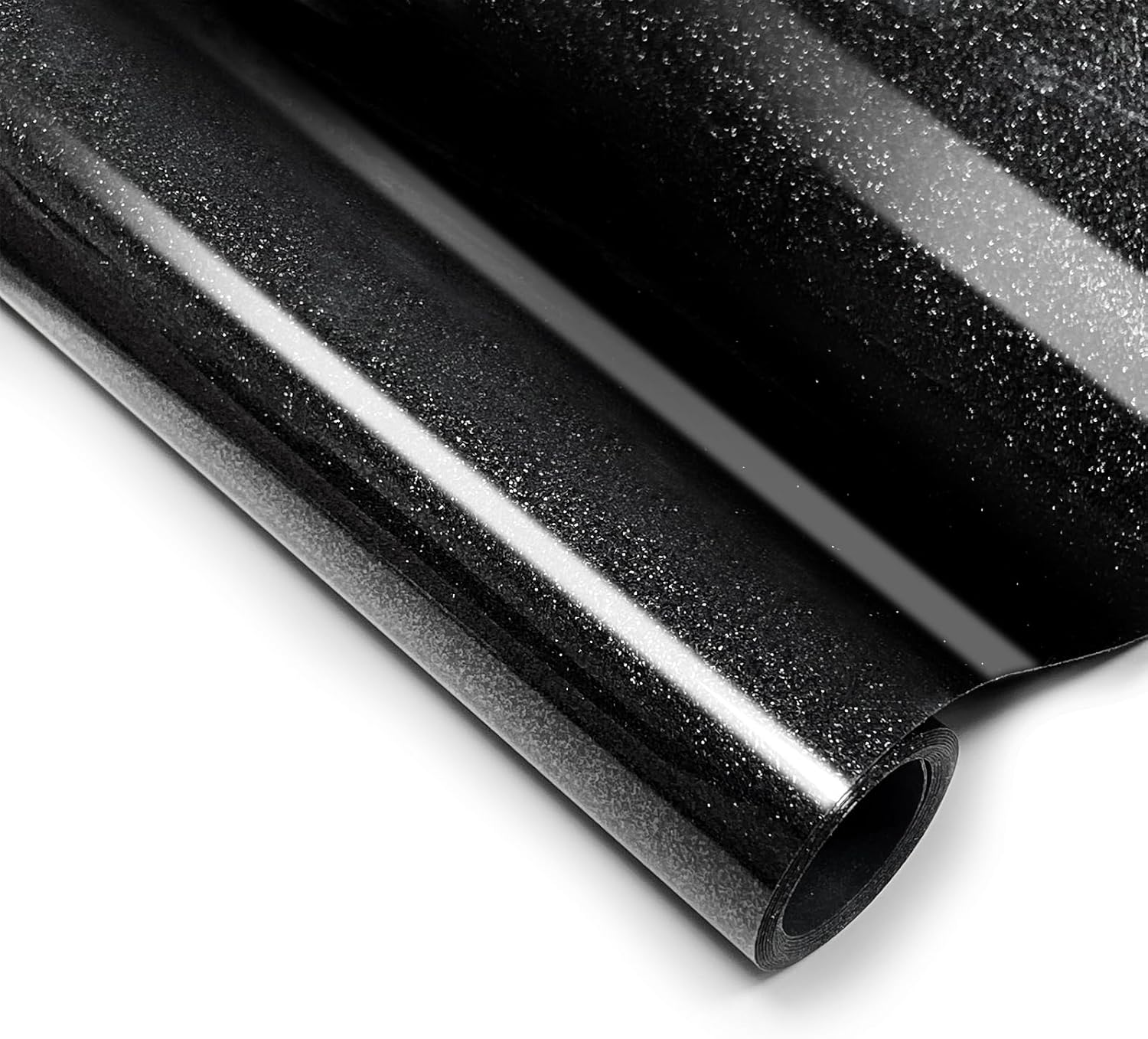 Black Glitter HTV Heat Transfer Vinyl, 12" x 5ft lron on Vinyl, for T-Shirt Ironing, Vinyl HTV Easy to Cut and Weed, The Best Choice for DIY Creativity. (Black, 12" x5ft)