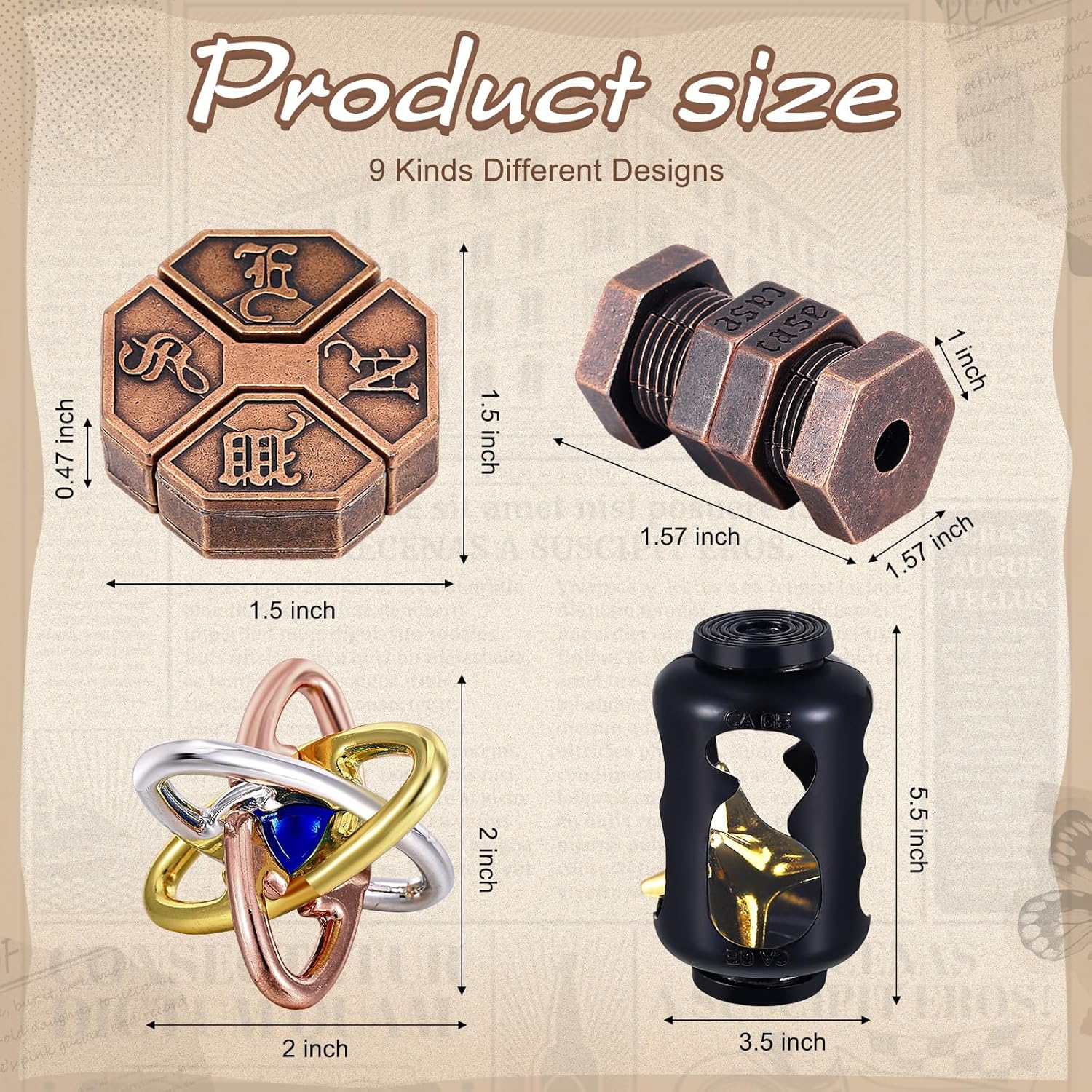 - 9 Pieces Metal Puzzles: there are 9 pieces of puzzles for adults in different difficulty, which is carefully designed to exercise your brain, helps with practicing concentration and focus