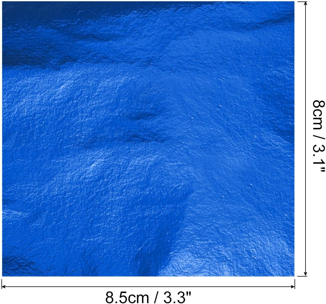 - In the package of: 150 Pcs x Foil Sheets; Size(LxW):8.5cm x 8cm / 3.3 Inch x 3.1 Inch; Color: Blue; Surface: Plating