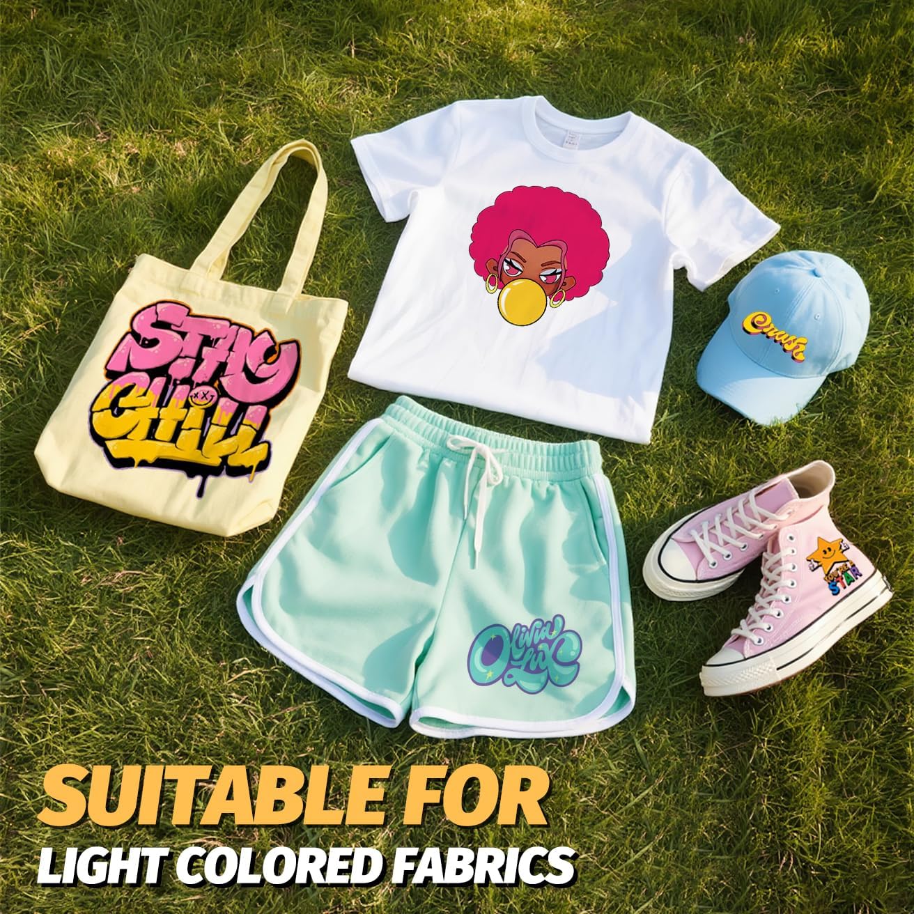 - 💖LOVEIN HEAT TRANSFER PAPER:Upgraded Light Plus heat transfer paper is suitable for inkjet and laser printers, the package contains 10 sheets of transfer paper, 1 sheet of reusable teflon paper. This transfer paper is suitable for white and light colored 70%-100% cotton fabrics.Transfer your favorite patterns onto T-shirts, canvas, and hats create your own iron-on transfers.