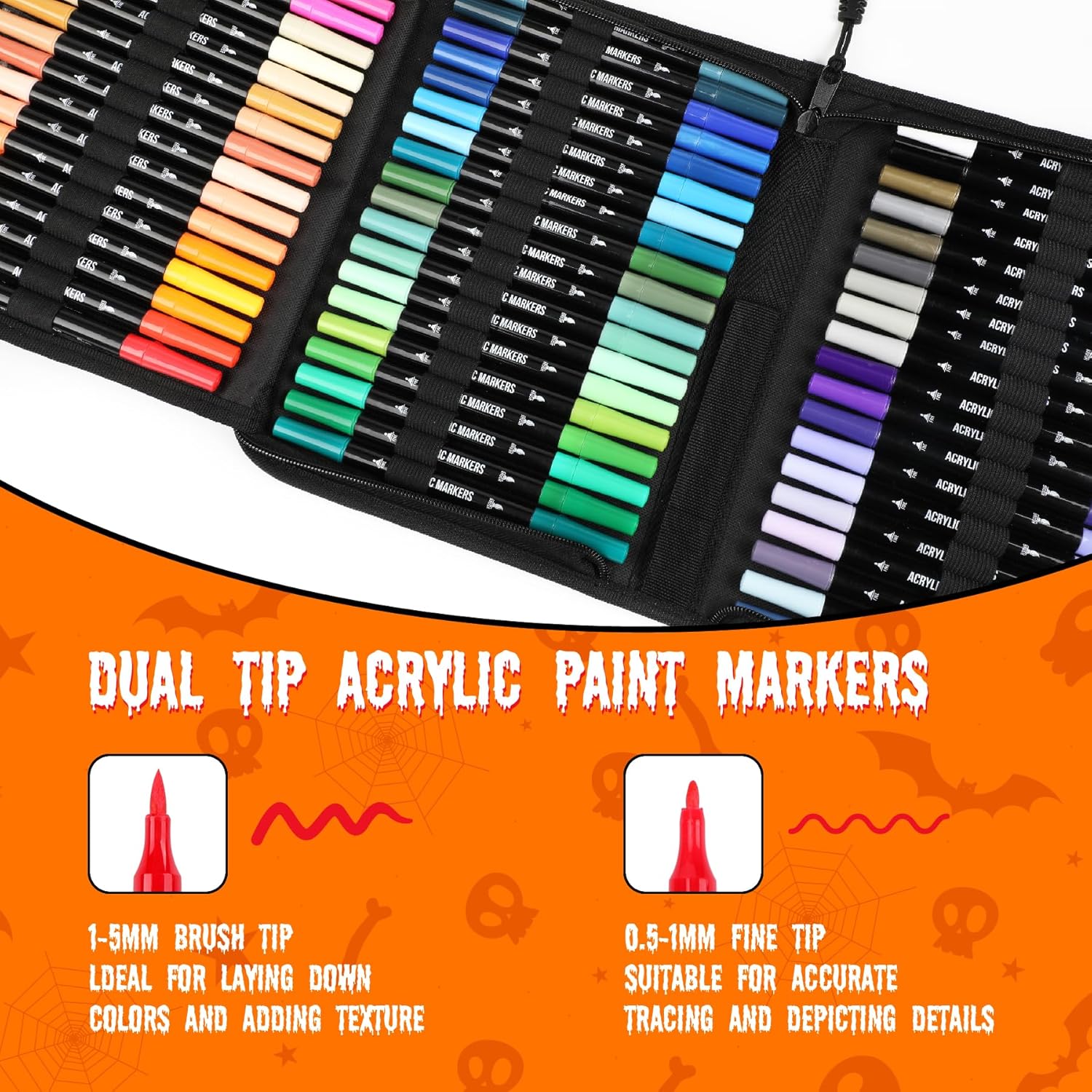 - 【Versatile Dual-Tip Design】: Unleash your creativity with our acrylic markers featuring a unique dual-tip design. The extra-fine tip is perfect for intricate details, while the brush tip allows for expressive brushstrokes. From delicate line work to bold sweeps, these markers adapt effortlessly to your artistic vision.