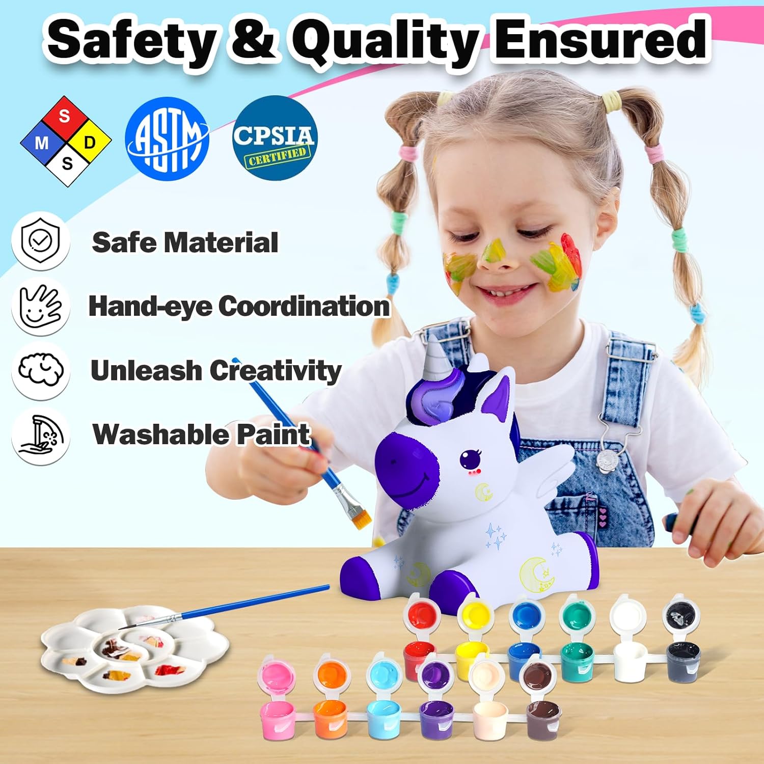 - 🌈【Safe, Non-toxic & Washable Painting Kit with CPSC Tested Report】Let your artistic flair fly without worrying about making a mess. FUNZBO washable painting kit for kids will ensure you don't ruin clothes or furniture when get creative. This arts and crafts set has gone through extensive toxicity tests to make sure every component is safe for you and your kids to use. Enjoy painting fun is important but safety always comes first.