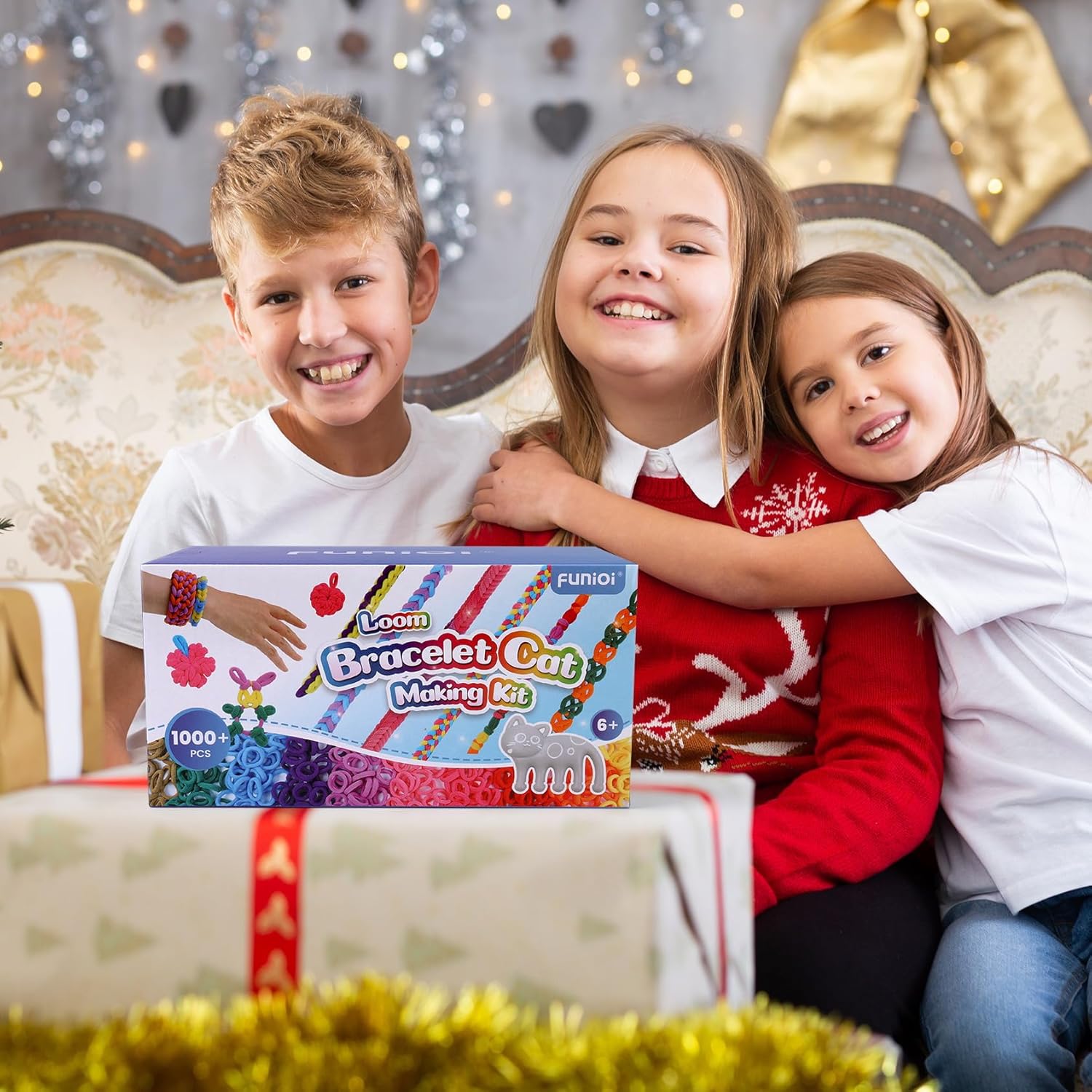 FUNiOi Kids Art and Craft Kit, Rubber Band Bracelet Make Toy, Cat Weaving Comb, 1000+ Colorful Hair Ties, DIY, Organizer Case, Gift for Girls 7-12 Years