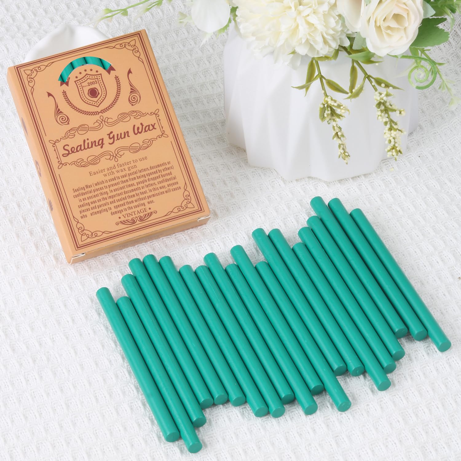 - Package Includes: 20Pcs green sealing wax sticks. Each wax sealing sticks measures 0.28 x 3.94". making them compatible with 0.28" glue gun for easy melting. 20pcs glue gun wax seal sticks are available for 100-120pcs standard wax seal stamp seals
