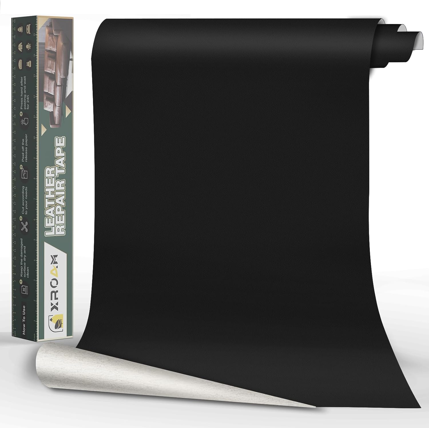 Leather Repair Tape, 16x79 inch Leather Patches for Furniture, Self Adhesive Leather Repair Patch for Sofas, Couches, Leather Covers, Seats, Chairs, Vinyl Repair Tape Black-Fine Grain