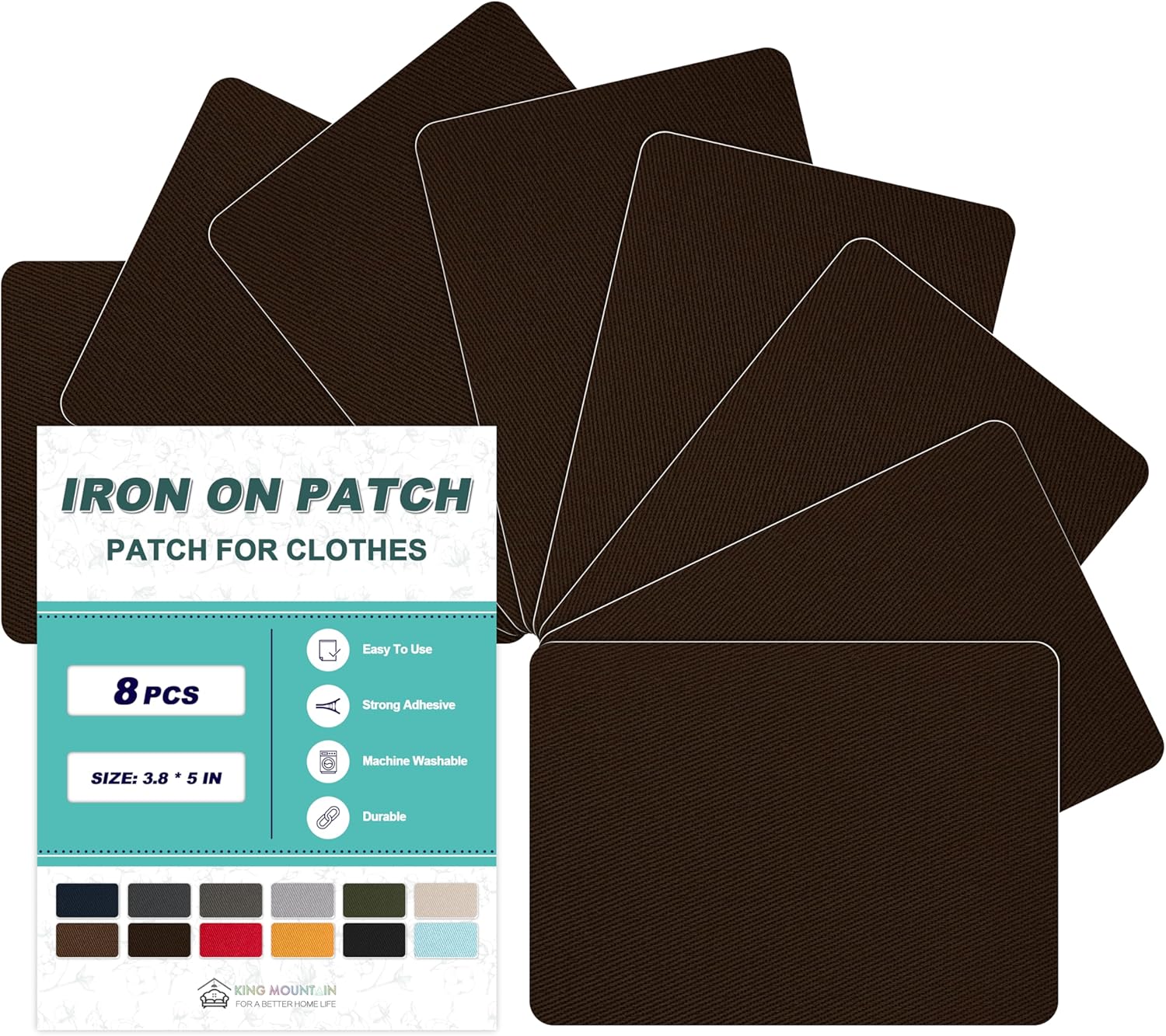 Iron on Patches for Clothes, 8 Pieces Patches for Cloth, 100% Cotton Fabric Patches for Clothing, Bag, Hat Repair, Clothing Repair Decorating Kit 3.7" by 4.9" (9.5 cm x 12.5 cm, Dark Brown)