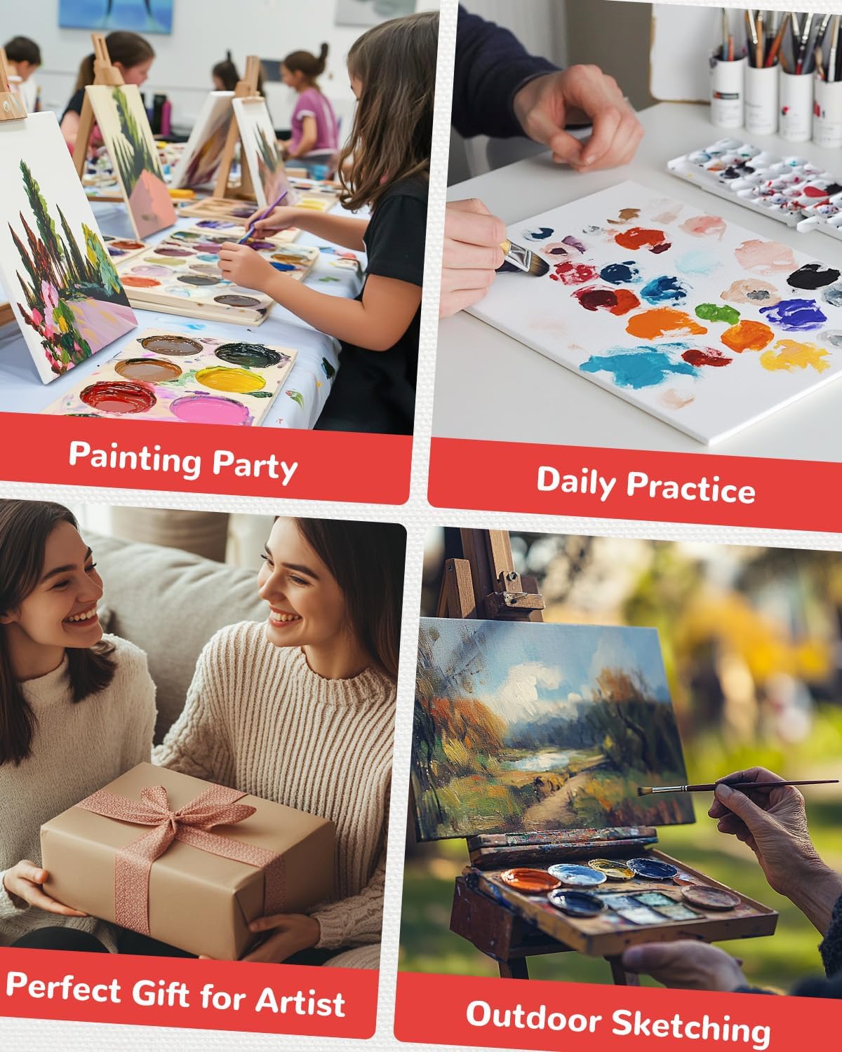 - Lightweight and Portable: These 9x12 inch painting canvas boards are not only ideal for setting up a dedicated studio space but are also compact enough to be easily stored and transported. Whether you're planning a day out for plein air painting or need to pack light for a painting class, these art canvas for painting are the perfect solution.