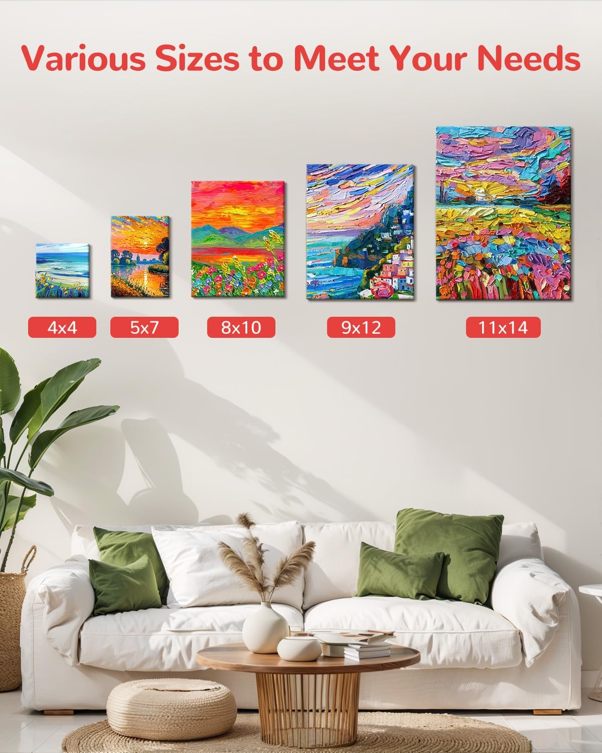 - Superior Quality Material: Crafted from 100% pure cotton, these painting canvas are expertly quadruple pre-primed with non-toxic, acid-free acrylic gesso. This ensures that your artwork retains its vibrant colors and natural tones over time. The smooth, white surface provides an excellent foundation for all types of paints, ensuring that your creations look their best.