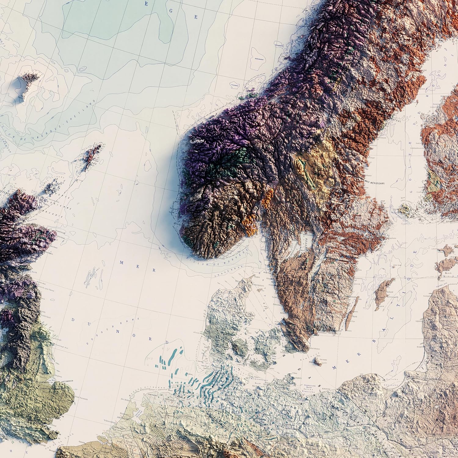 - An Artful Tribute to Europe’s Terrain: This shaded relief map captures the natural elevations and contours of Europe in rich topographic detail. Vintage in style and crafted with modern elevation data, it’s perfect as a gift for adventurers or as bold wall art for your home, office, or cabin – a unique way to celebrate the beauty of Europe.