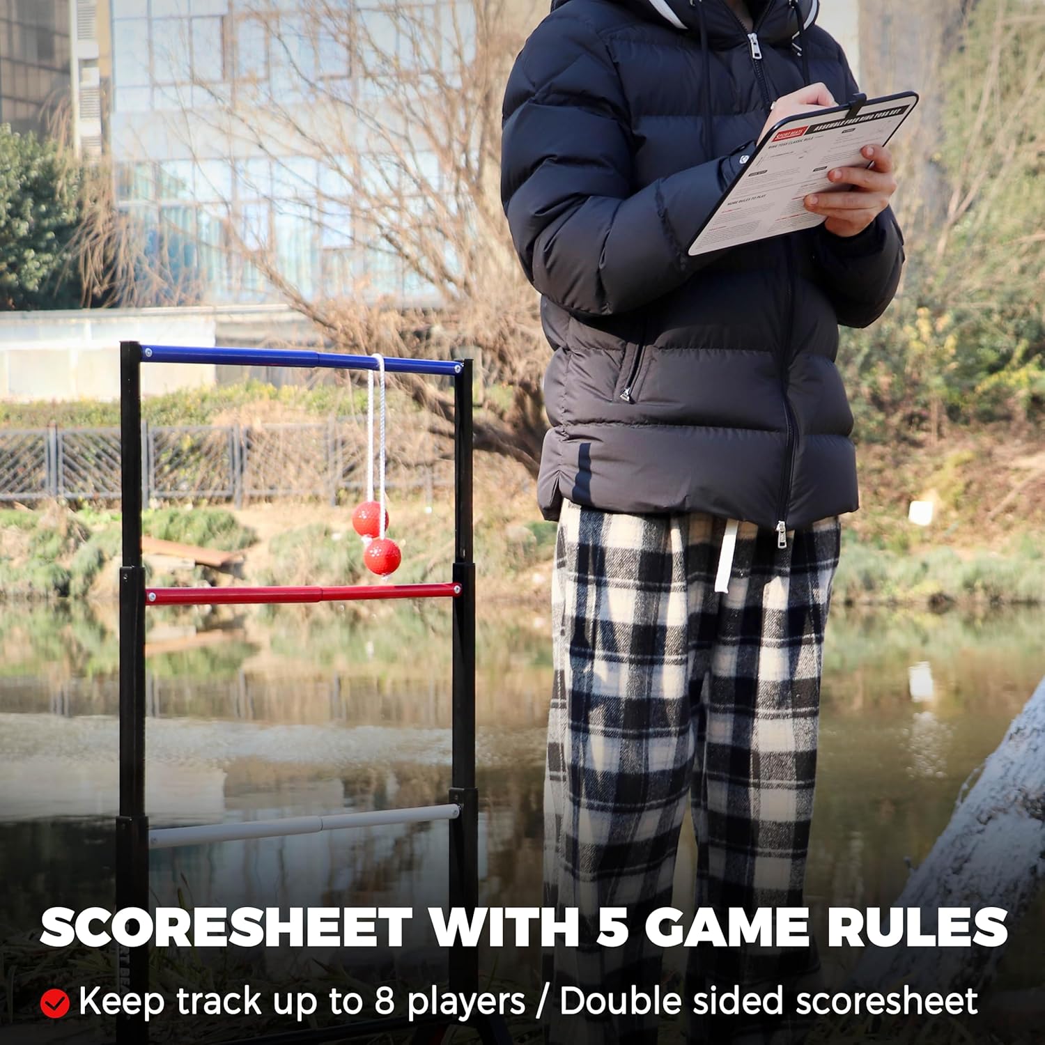 - 5 Games + Scorecard: Comes with official ladder ball rules, a scorecard with 5 game variations to keep everyone entertained at BBQs, tailgates, and parties.