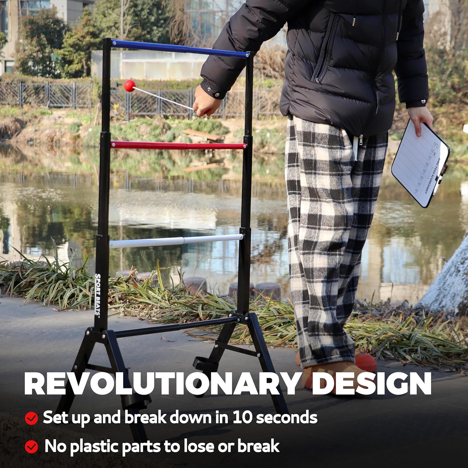 - Quick Setup in 15 Seconds: Expand the ladder horizontally with a smooth pull and vertically with quick-release spring pins. Fold it flat into the included carry bag in no time - ideal for on-the-go fun!