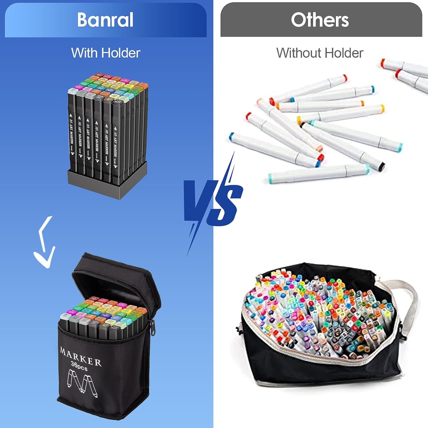 Banral 36 Colors Alcohol Markers Set, Dual Tip Alcohol Based Art Marker for Artists Kids Adult Coloring, Permanent Illustration Sketch Pens for Drawing with Case and Holders