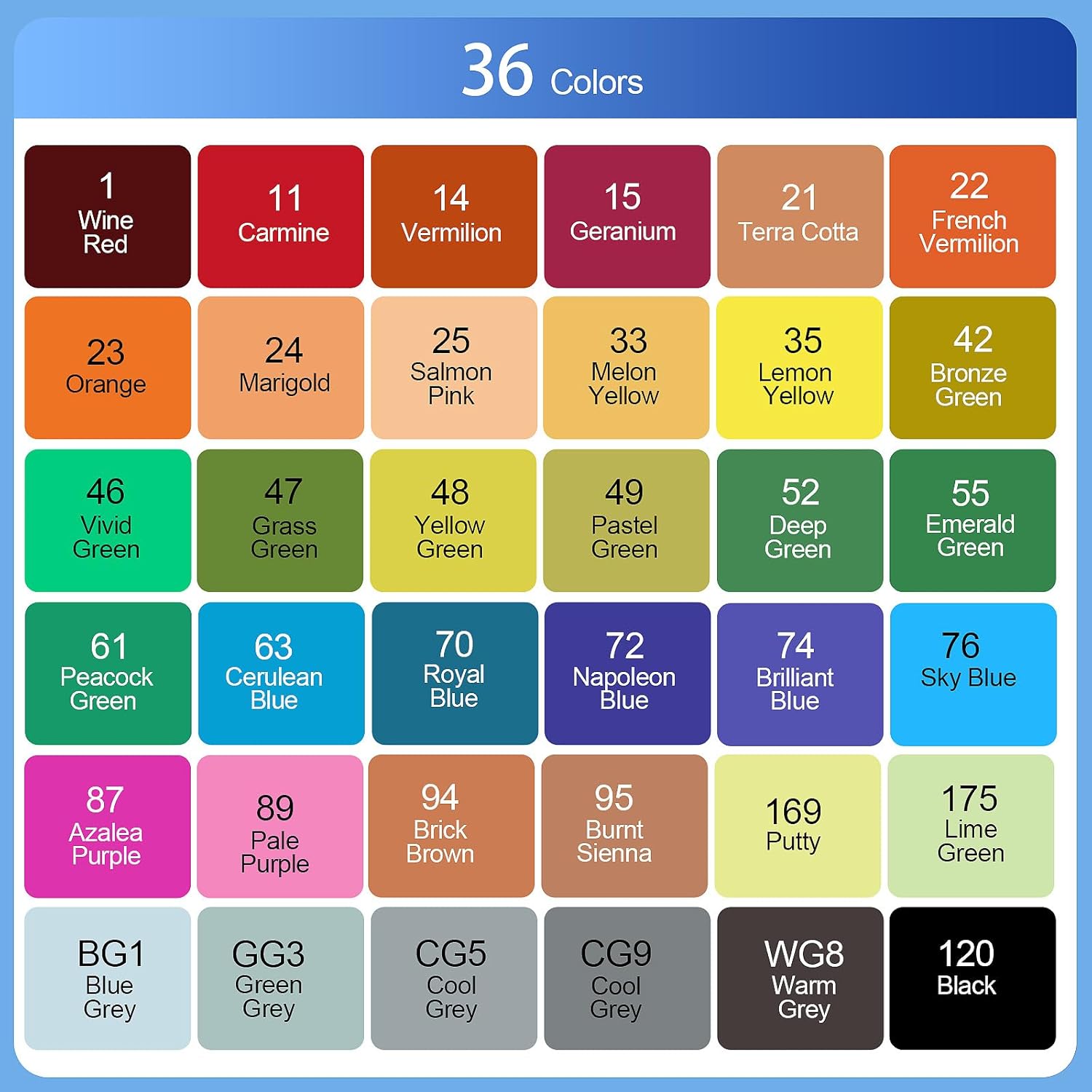 - 【36 VIBRANT COLORS】36 colors unique art marker pens bring your art to life, multiple choices, standard colors on the pen, new color system, no deviation, natural transition, natural color overlap, outstanding effect, bright color, easy to blend. Whether it's a coloring book or a masterpiece in the making, your artwork is sure to shine with these brush markers. Great as art markers, sketch markers, permanent markers, alcohol based markers, paint markers.