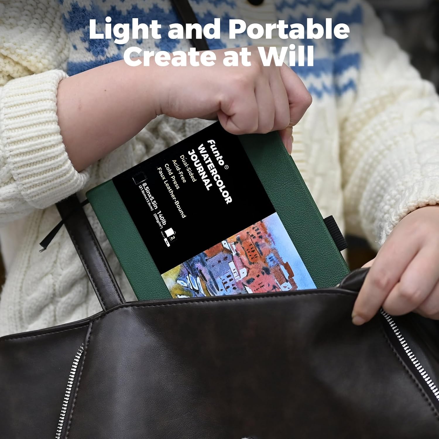 - METICULOUSLY BOUND - Funto Watercolor Journal is a masterful blend of artistry and craftsmanship.The built-in paper pocket and elastic band ensure its integrity.