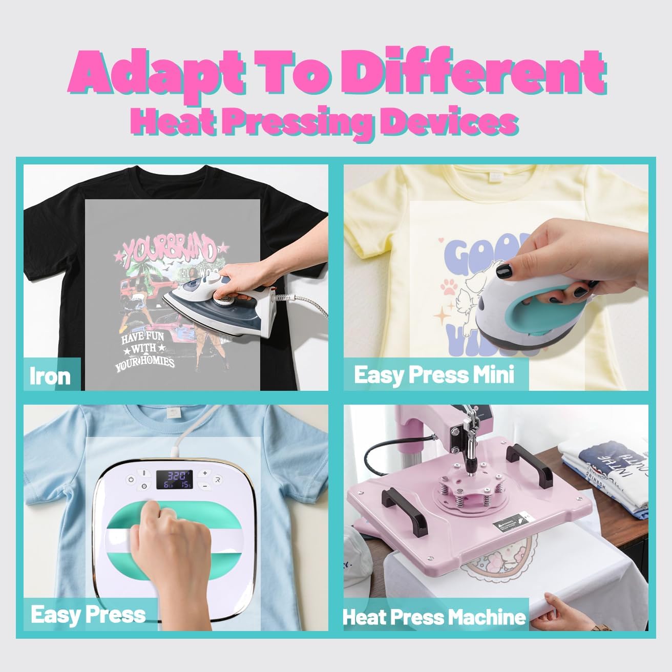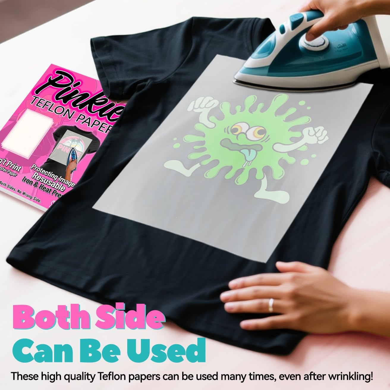 - Wide Applications: This Teflon Paper is compatible with all type of Heat Transfer Paper, including glow-in-the-dark transfer Paper, glitter transfer Paper, and Heat Transfer Vinyl.