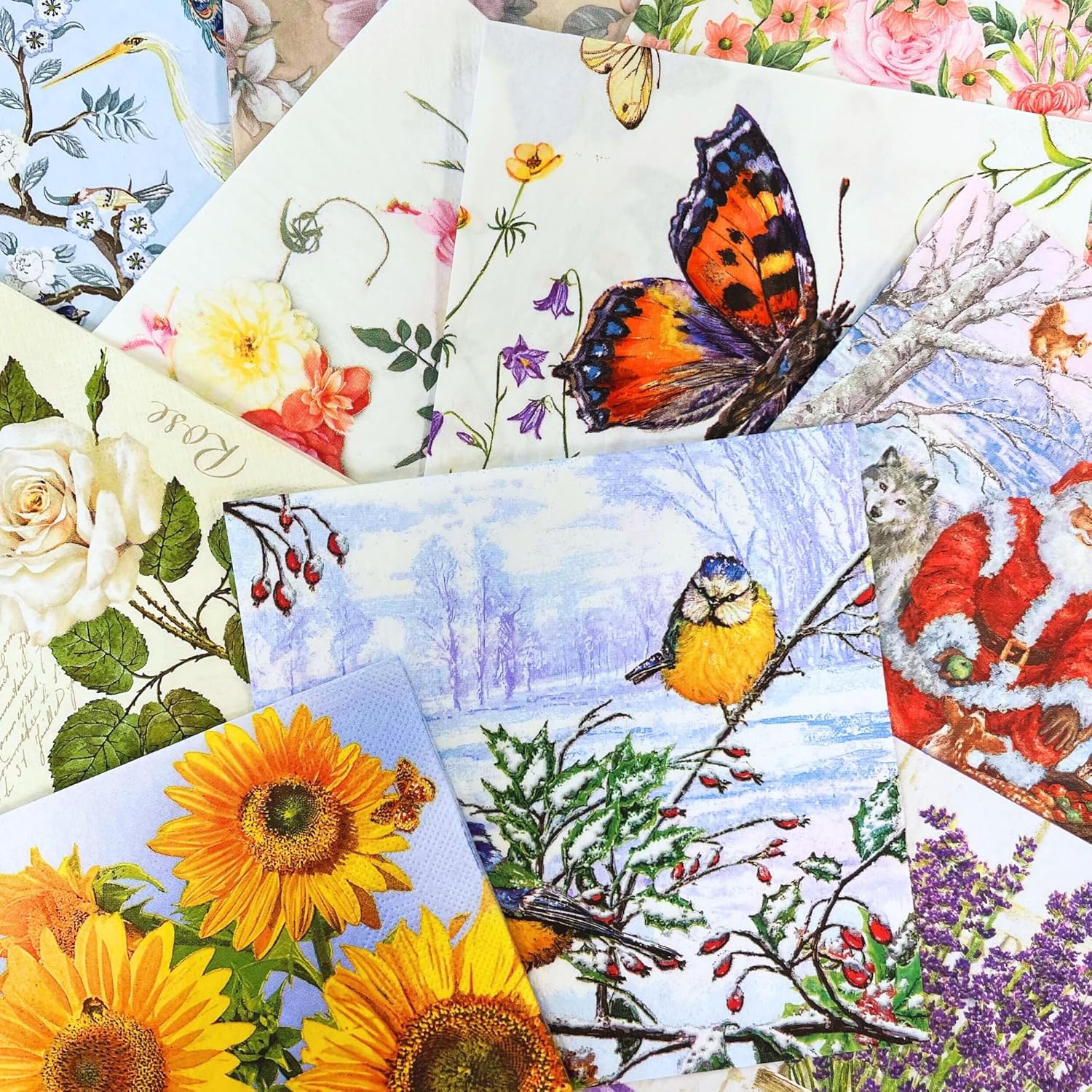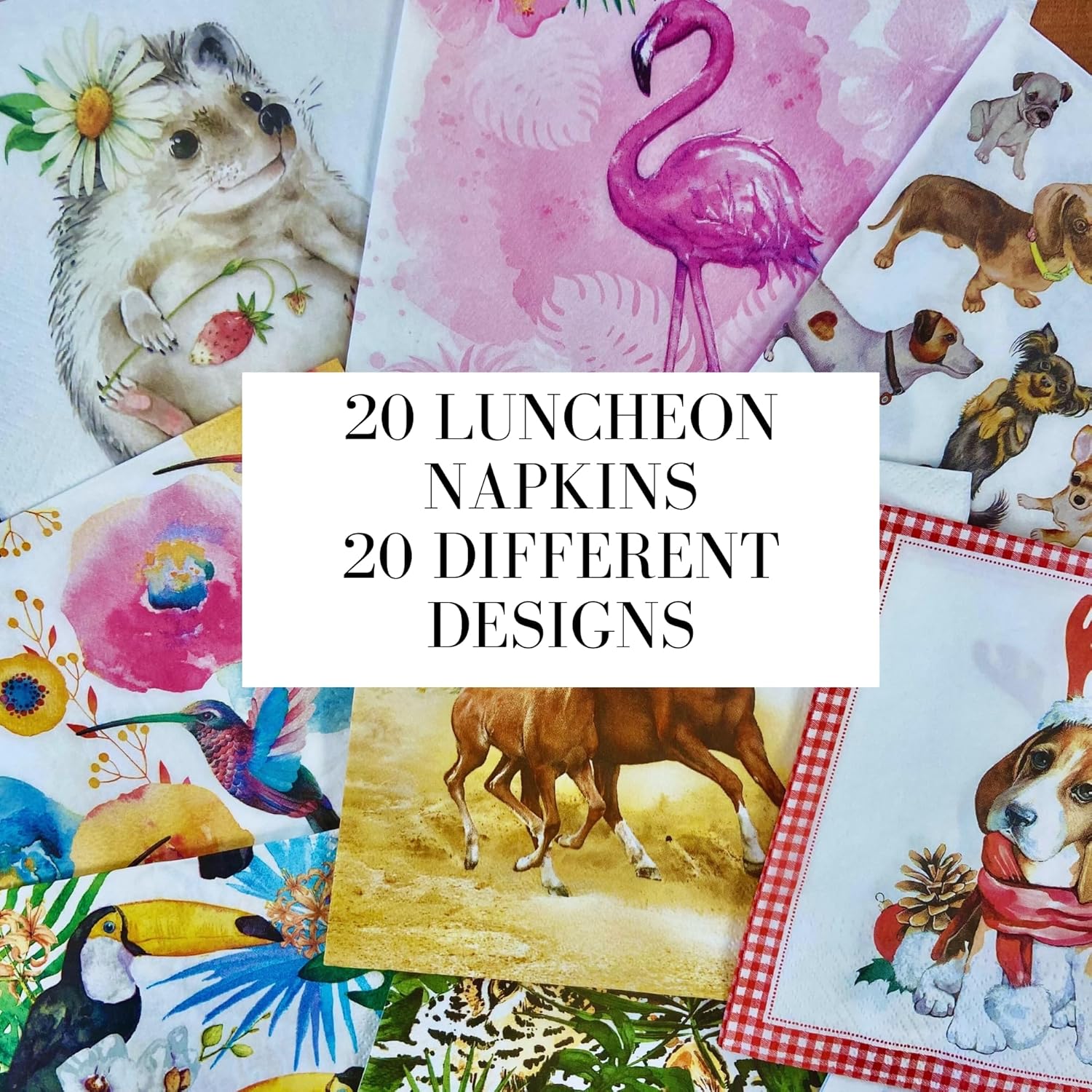 Mystery Pack Decoupage Paper Napkins, 20-ct Assorted Surprise Napkins, Decorative Napkins Random For Art Craft Junk Journal, 20 Different Designs