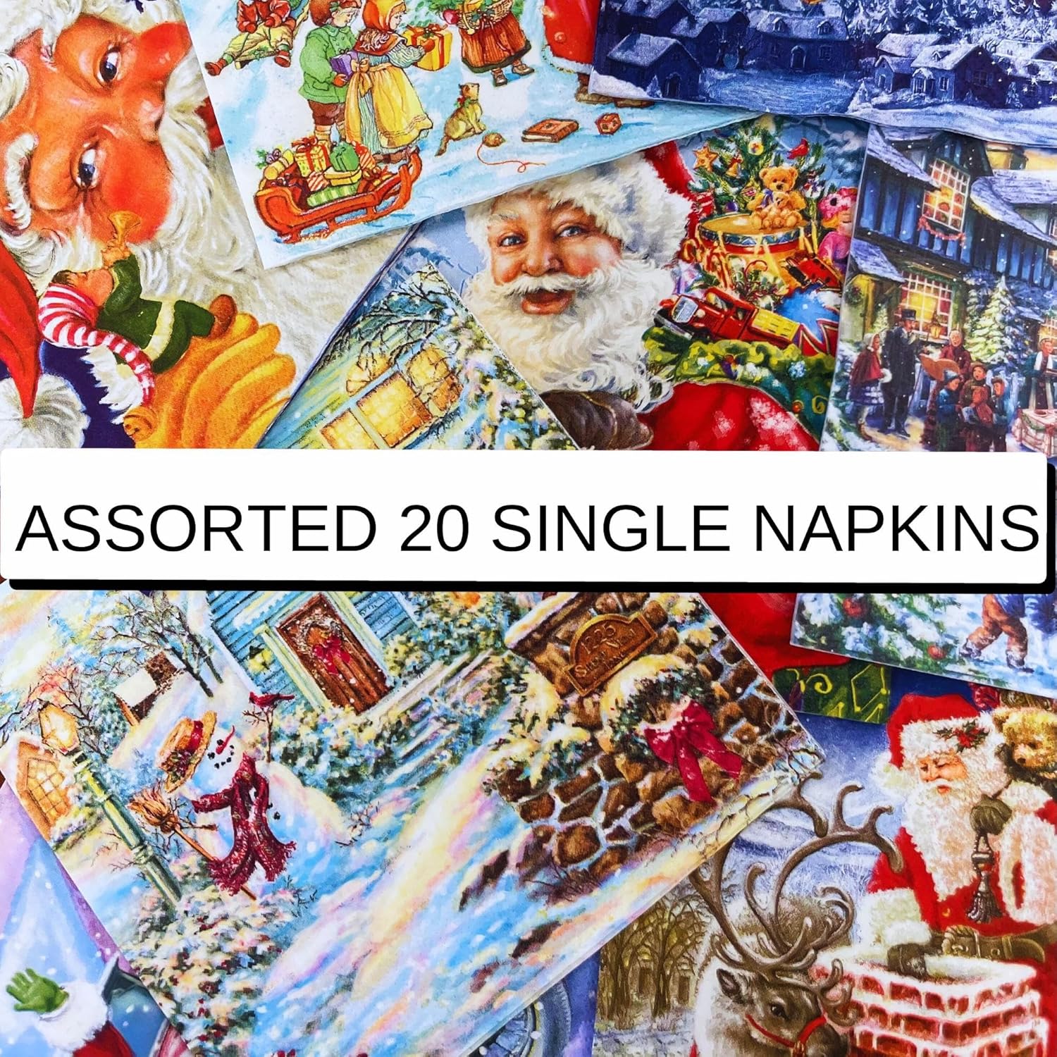Keep Unique Mystery Pack Decoupage Paper Napkins, 20-ct Assorted Surprise Napkins, Decorative Napkins Christmas for Art Craft Junk Journal, 20 Different Designs