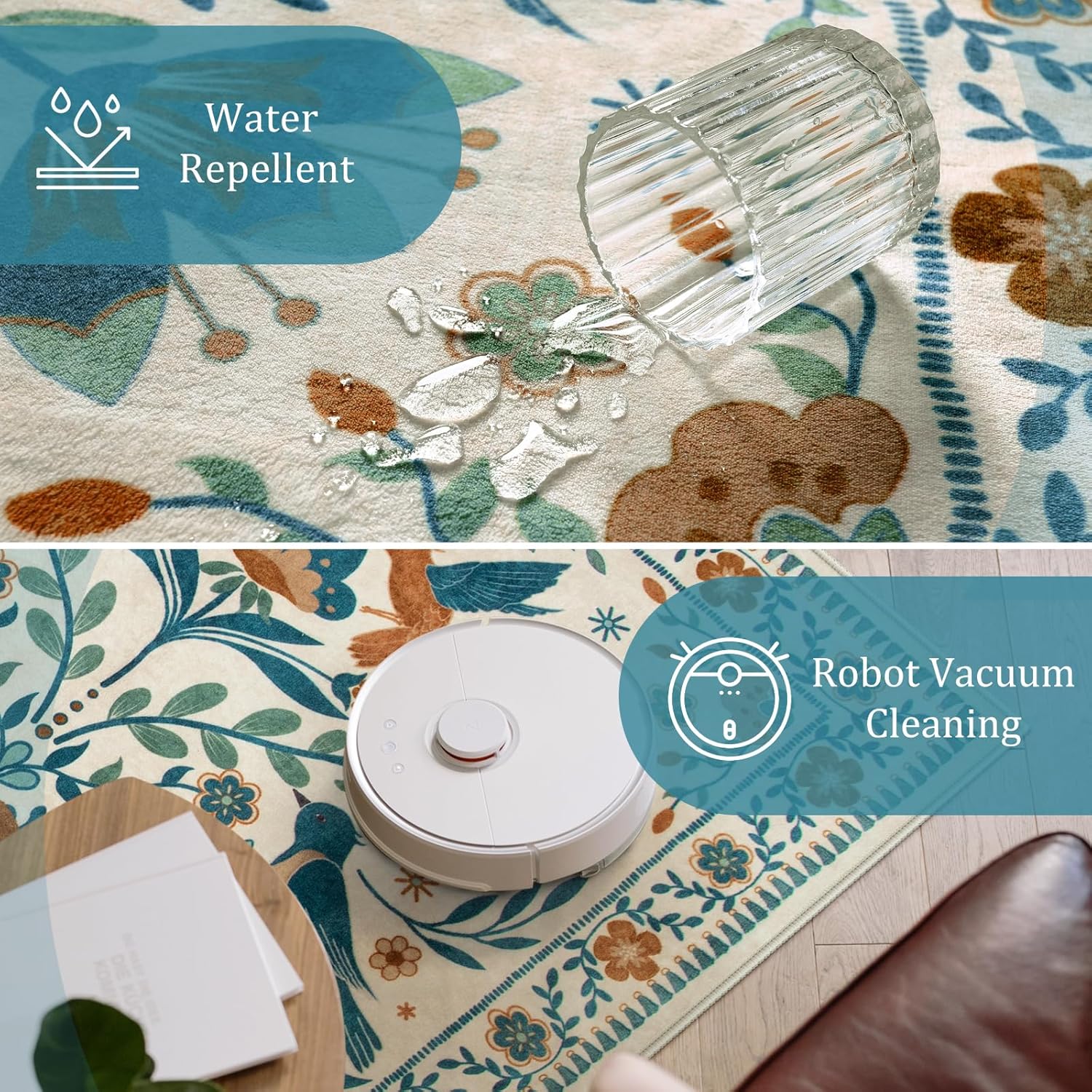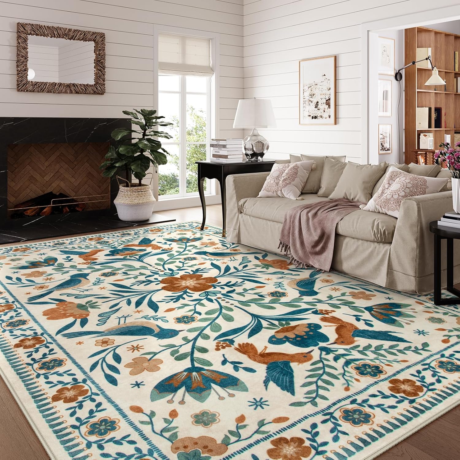 - 【Vibrant Floral Design】Our area rugs have a trendy style and a unique bird and flower design. Elegant tones blend perfectly with your home. Your department, kids' room, dorm, girls' and boys' playroom, and other areas will achieve natural charm coming from retro, modern and bohemian