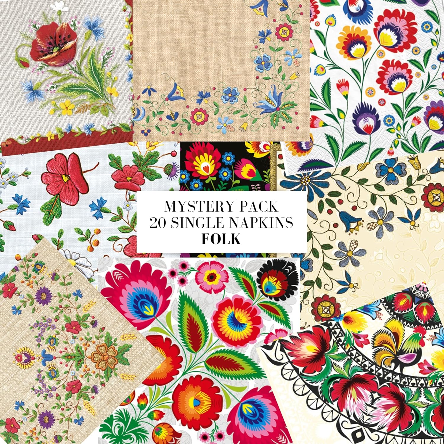 Keep Unique Mystery Pack Decoupage Paper Napkins, 20-ct Assorted Surprise Napkins, Decorative Napkins for Art Craft Junk Journal, Scrapbooking, 20 Different Folk Designs