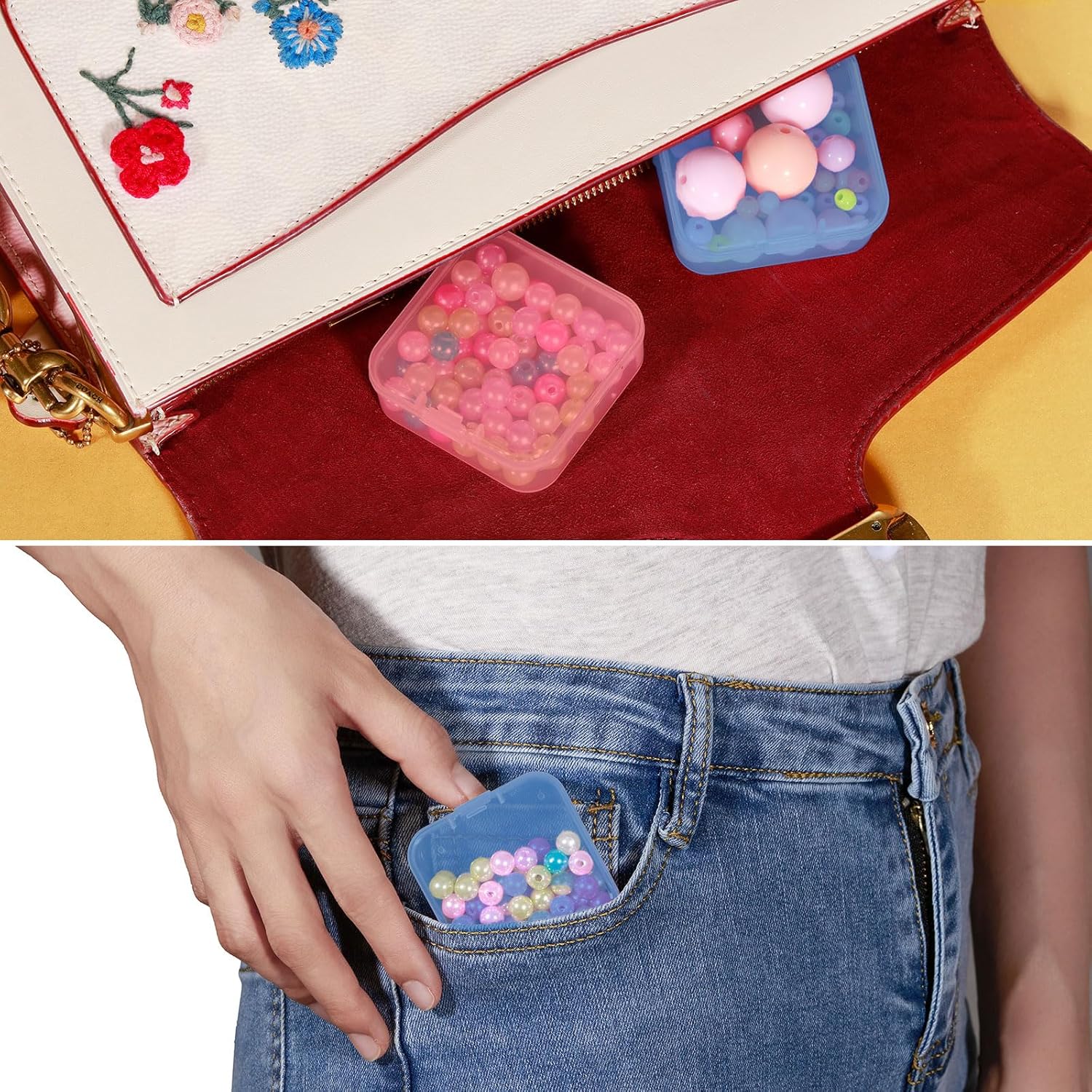 - USEFUL DESIGN: Each clear box has a hinged lid, which can prevent your items from being contaminated by dust and dirt, and also prevent items from falling. With good safety features, you can use these boxes to carry your small beads or jewelry anywhere.