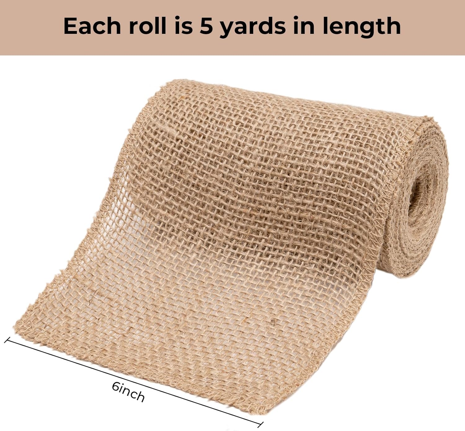 Natural Burlap Fabric Roll 10 Yards - 6 Inch Jute Ribbon for DIY Gift Wrapping, Craft Projects, Wedding, Christmas, Home Decoration (15 cm)