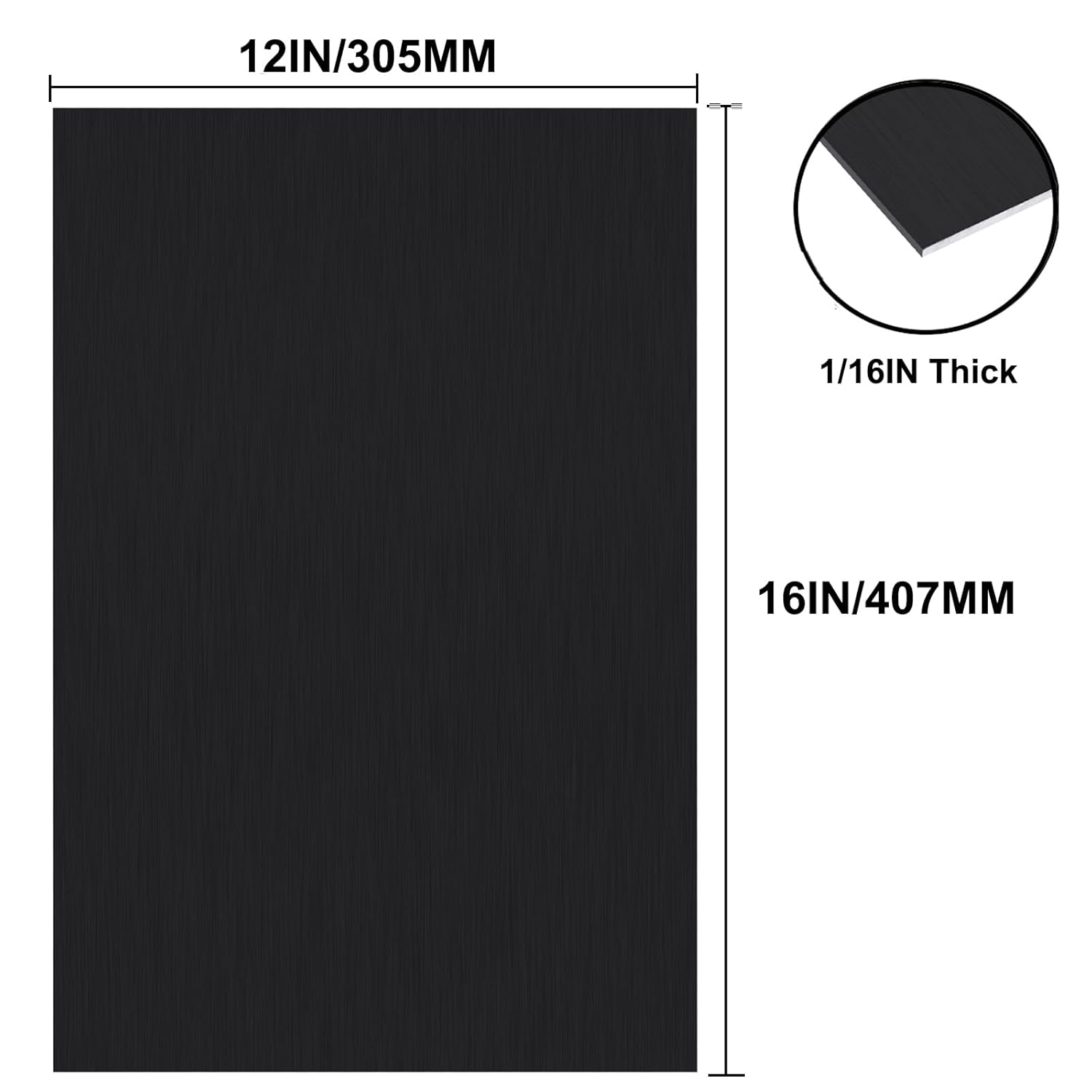 - 【Black Anodized Aluminum Sheet Size】12”(L)x 16”(W) x 1/16”(1.50MM) (thick), suitable for engraving different signs, badges, brands, metal plaque, table plate, label plate and more.