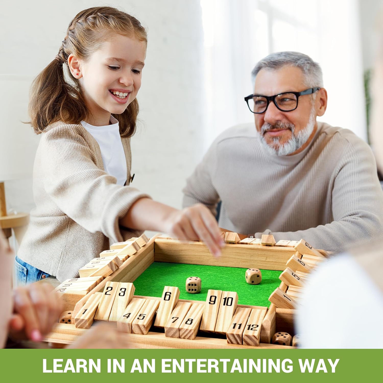 ropoda Shut The Box Game, Upgraded 12 Numbers Wooden Board Games for Adult and Kids, Shut The Box Dice Game -Addition Training, Fun for Family Game Night