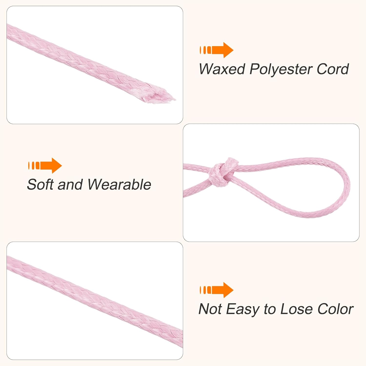 MECCANIXITY Waxed Cord 0.8mm Waxed Polyester Cord 175 Yard Wax String for Bracelet Making,Necklaces, Beading,Jewelry Making and DIY Crafts(Light Pink)