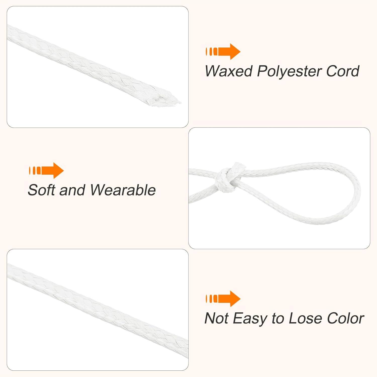 MECCANIXITY Waxed Cord 0.8mm Waxed Polyester Cord 175 Yard Wax String for Bracelet Making,Necklaces, Beading,Jewelry Making and DIY Crafts(White)
