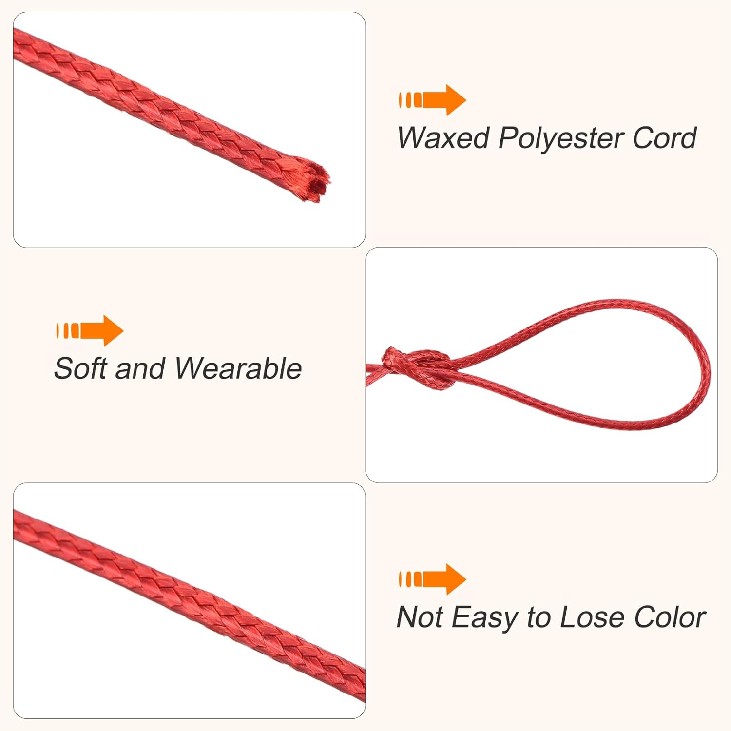 MECCANIXITY Waxed Cord 0.8mm Waxed Polyester Cord 175 Yard Wax String for Bracelet Making,Necklaces, Beading,Jewelry Making and DIY Crafts(Red)