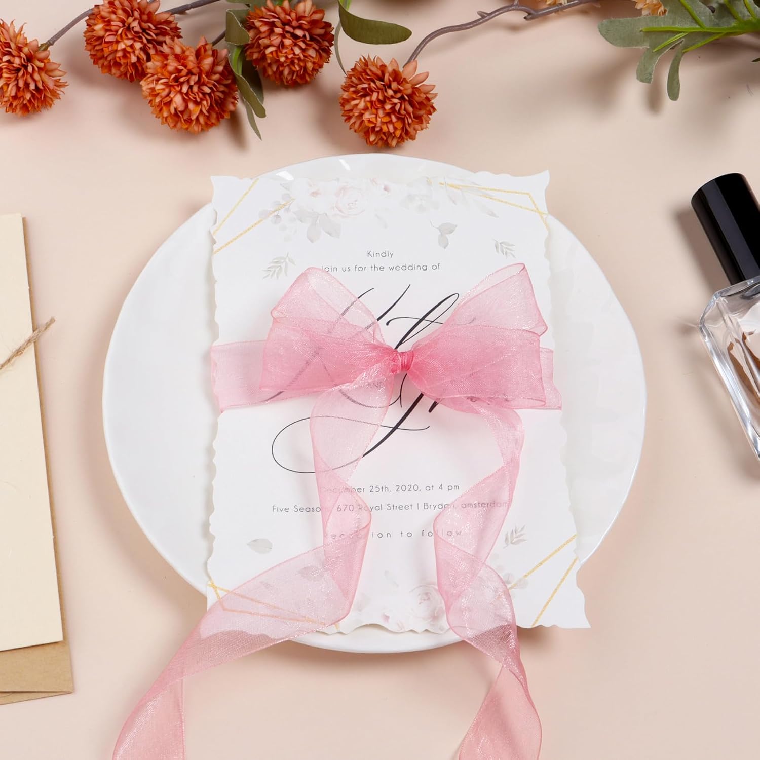 - OUTSTANDING DESIGN: These rose gold organza tulle ribbons are made of chiffon fabric. Our see-through mesh ribbon with a slight sheen will add an elegant and luxurious touch to your gift, beautiful and lovely, with neat edges, has an innate sturdiness to hold different shapes and is very sturdy.