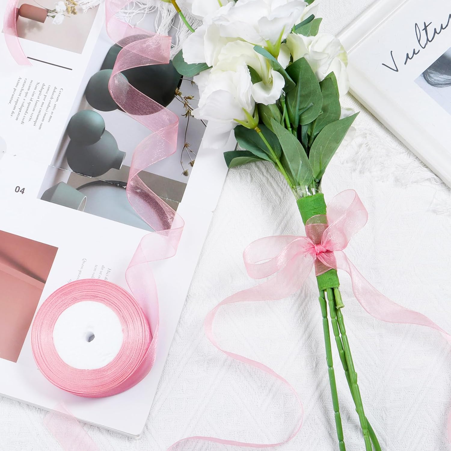 Ribbon for Gift Wrapping 3/4 inch Rose Gold Sheer Organza Ribbon for Flower Bouquet Tulle Thin Chiffon Ribbons for Wedding Invitations Christmas Halloween Presents Decorations Crafts 50 Yards
